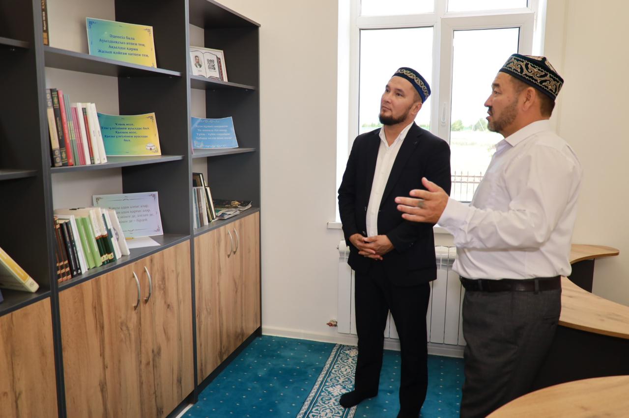 Сонымен  қатар құлшылық үйінің кітапхана бөліміне арнайы шолу жасап, кітап қорындағы еңбектергі назар салды.