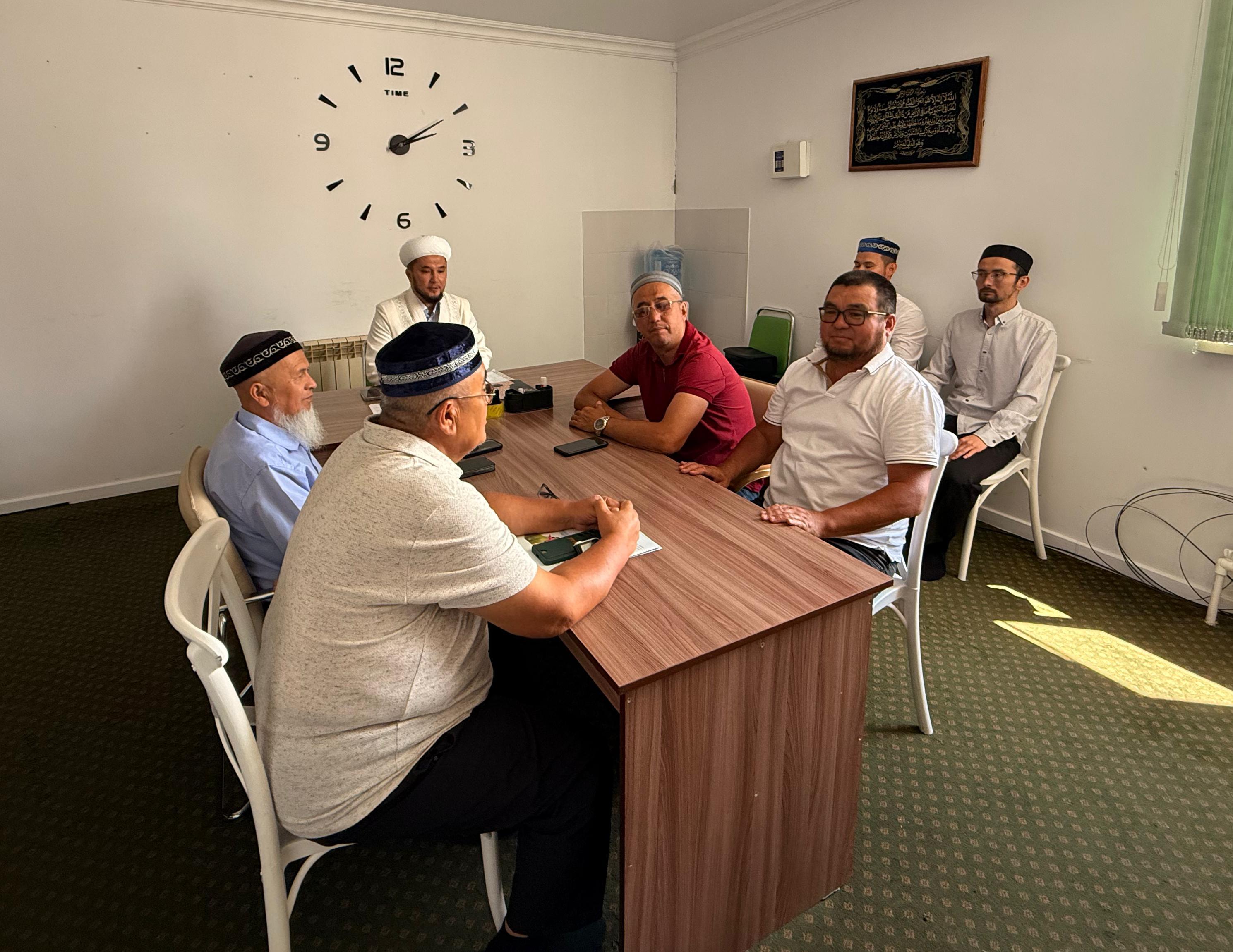Ал жұма уағызынан кейін мешіттің тыныс-тіршілігімен жіті танысып, құжаттарын тексерды. Мешіттің бас имамы Ержан Мизамовқа кілемін ауыстыру, дәретханасын жаңарту секілді біршама жұмыстар легі тапсырылды. Одан кейін ақсақалдар алқасымен жүздесіп, бірқатар мәселелерді талқылап, ұсыныс-талаптарын тыңдады.