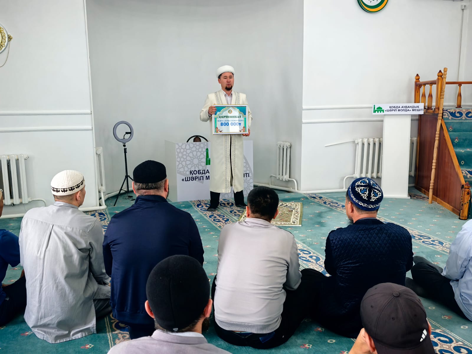 Ақтөбе облысы, Қобда ауданы «Шәріп Молда» мешітінде өнегелі іс-шара өтті. Ауданның бас имамы Абай Шымболатов еліміздегі діни оқу орындарында діни білім алып жатырған Қобда ауданынан шыққан шәкірттерге қасиетті жұма күні 800 000 теңге көлемінде сыйақы табыстады. Бұл амалдың маңыздылығын жамағатқа айтып, алдағы уақытта жиі шәкірттерге қолдау жасап тұру оларға оқу аяқтағаннан кейін елге қызмет етулеріне арқау болатынын түсіндірді. Алматы қаласындағы «Нұр-Мубарак» ислам университетінде ақылы оқып жатқан шәкіртке 200 000 теңге, қалған діни оқу орындарында оқып жатқан 12 шәкіртке 50 000 теңгеден бөліп берді.