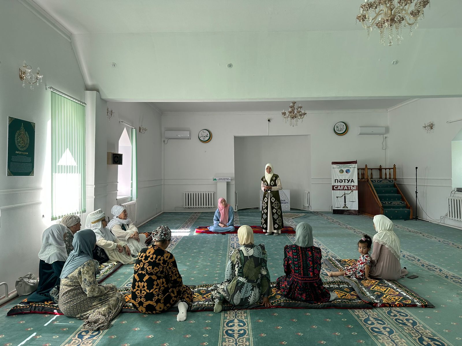 Мешіт ұстазы Баян Мергенғалиқызы Алла Тағаланың бізге берген тура жолынан адаспауды және дінмен салт-дәстүрдің ұстанудың маңызы дінмен дәстүрдің сабақтастығын айтты.
