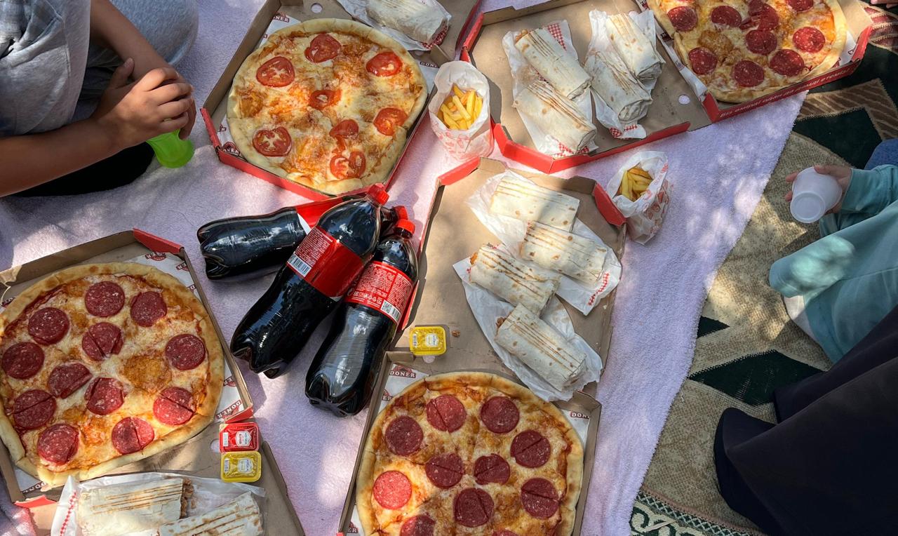 Шара барысында табиғат аясында мерекелік безендіру және дастархан жайылды.