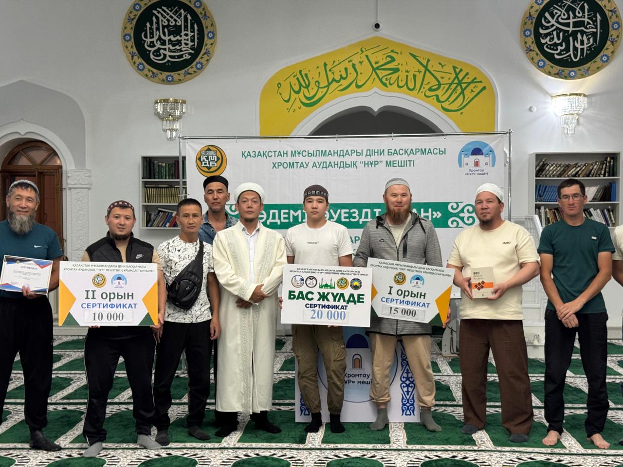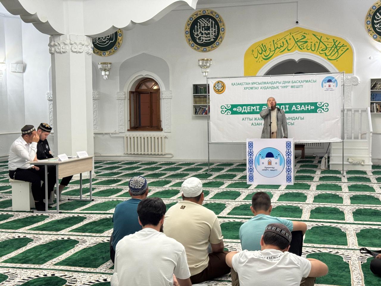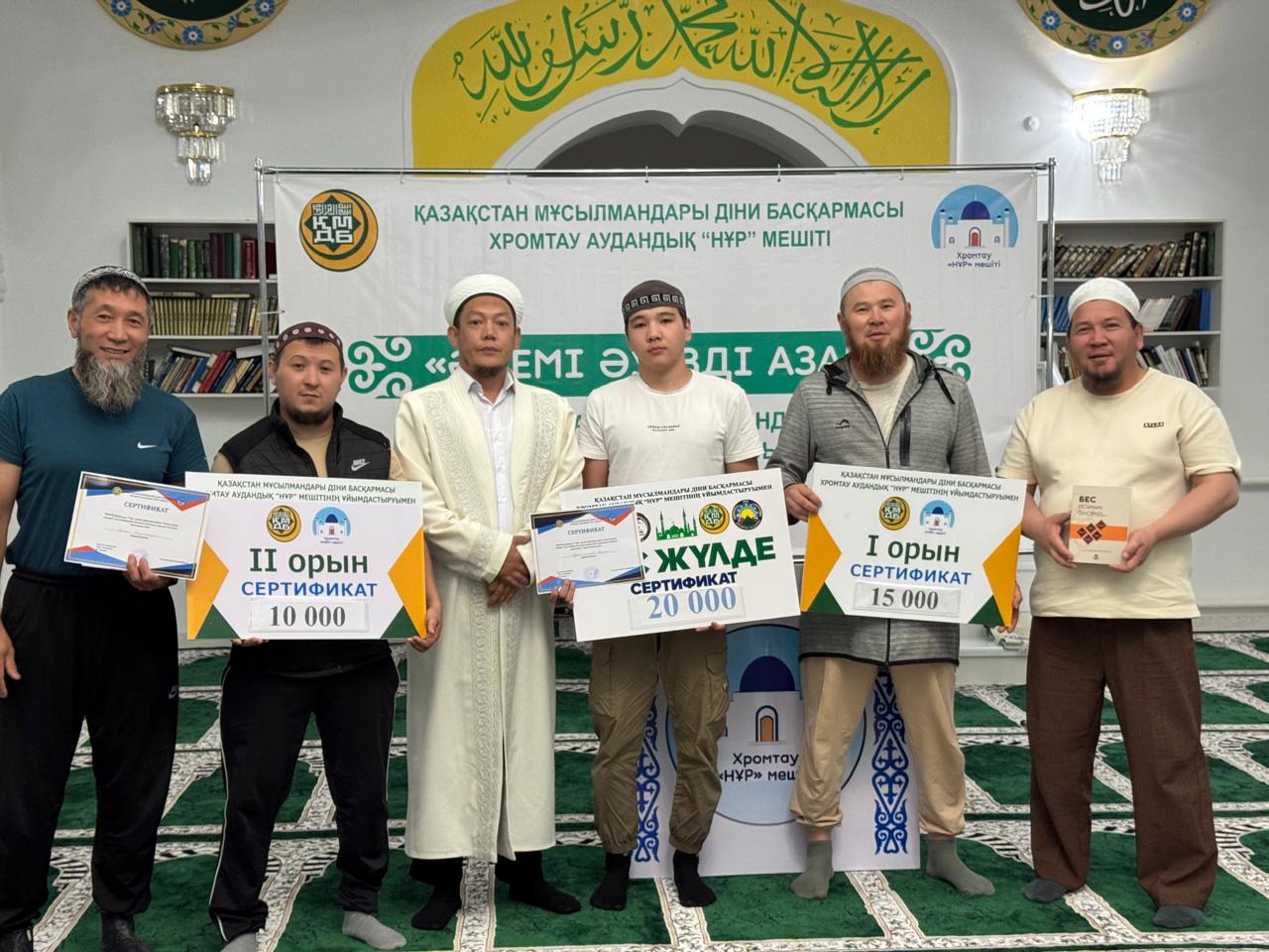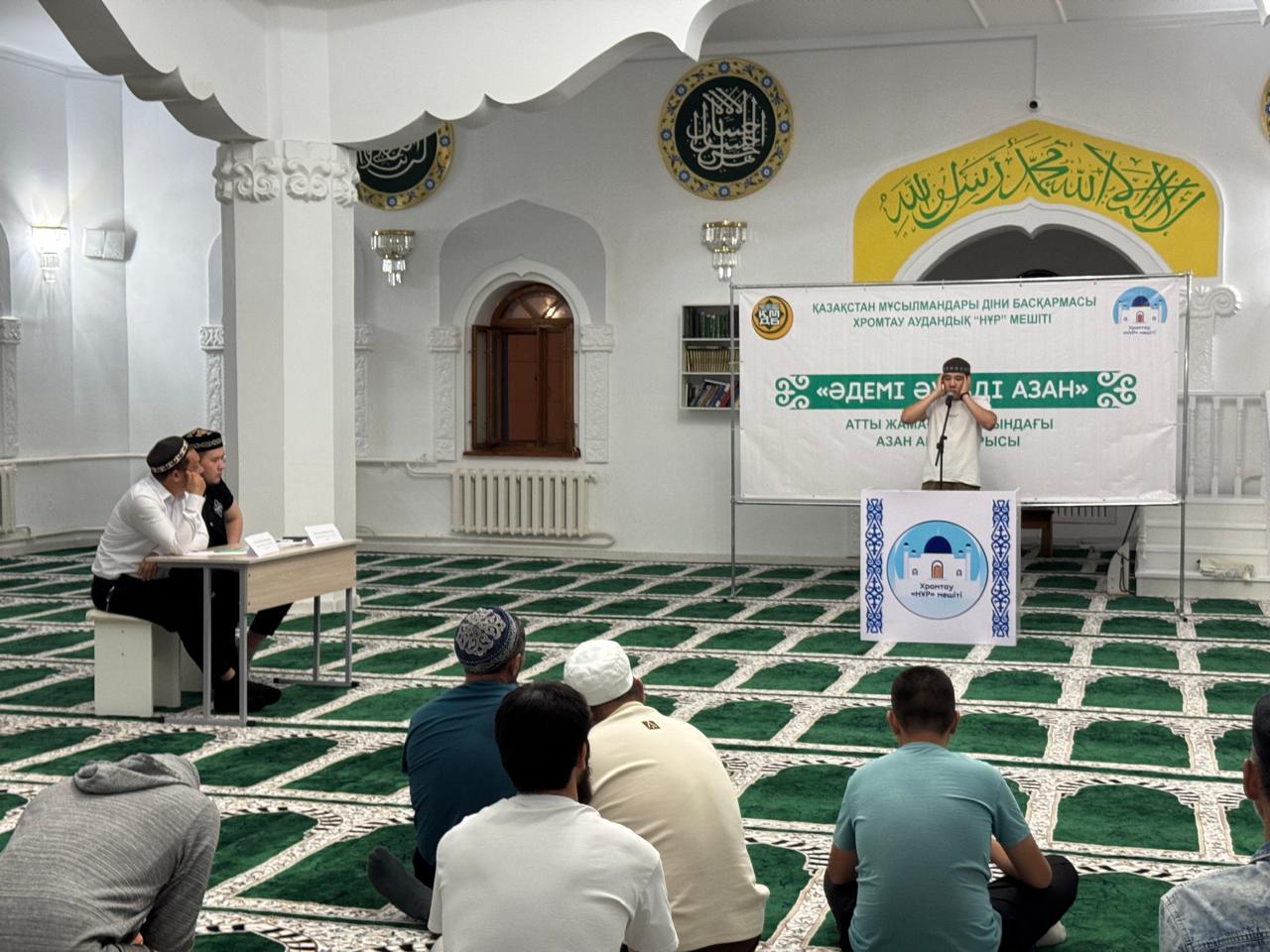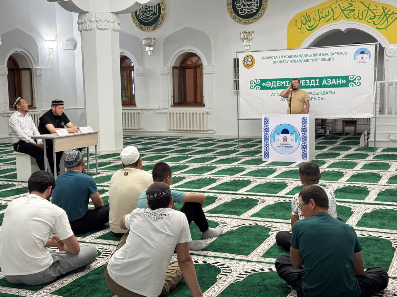 Хромтау аудандық “Нұр” мешітінің жамағаты арасында «Әуезді азан жарысы» өтіп, оған 8 азаншы қатысты.
