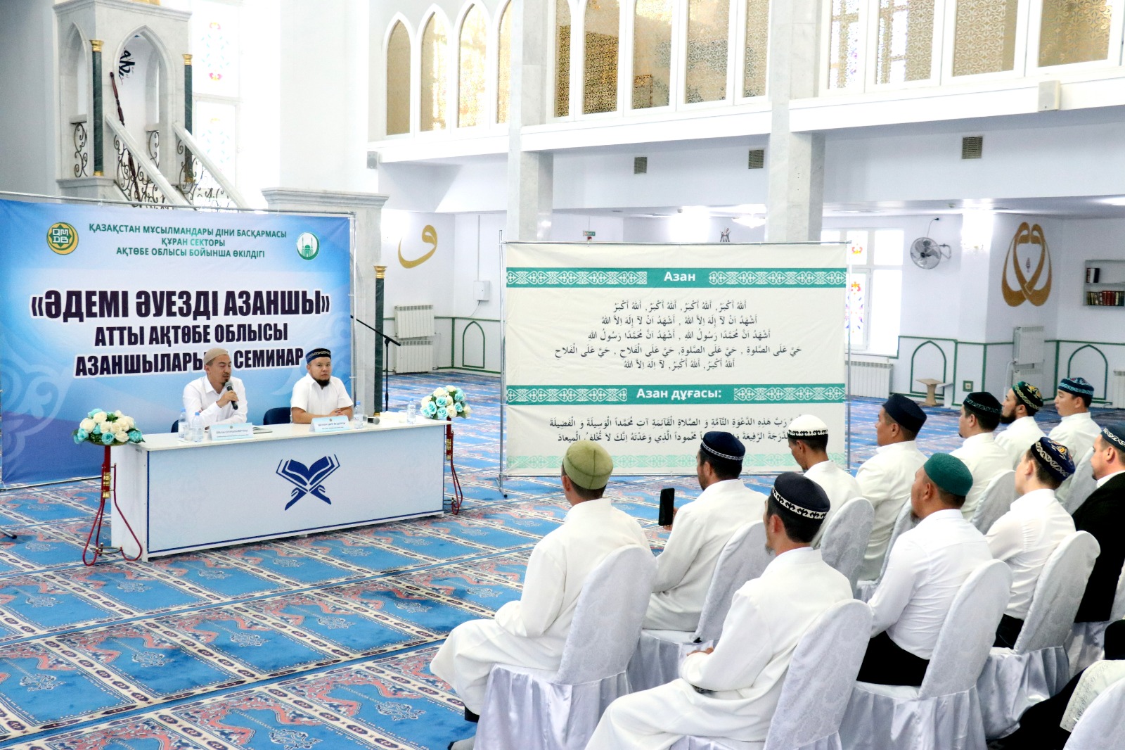Азан — Ислам дінінің ең басты құлшылықтағы мәйегі ретінде намазға шақыру. Азан — Алланың және Алла елшісінің ( Оған Алланың салауаты мен сәлемі болсын) есімін жар салу. Сондықтан да ол Ислам дінінің рәміздерінің бірі. Жамағаттың бес уақыт намазға жиылуына сөзсіз азанның әсері мол. Осыған орай, Ақтөбе облысына қарасты қала, аудан мешіттеріндегі азан сапасын арттыру мақсатында ҚМДБ Ақтөбе облысы бойынша өкілдігіндегі «Құран» секторының ұйымдастыруымен «Әдемі әуезді азаншы» атты азаншылар семинары өтті.