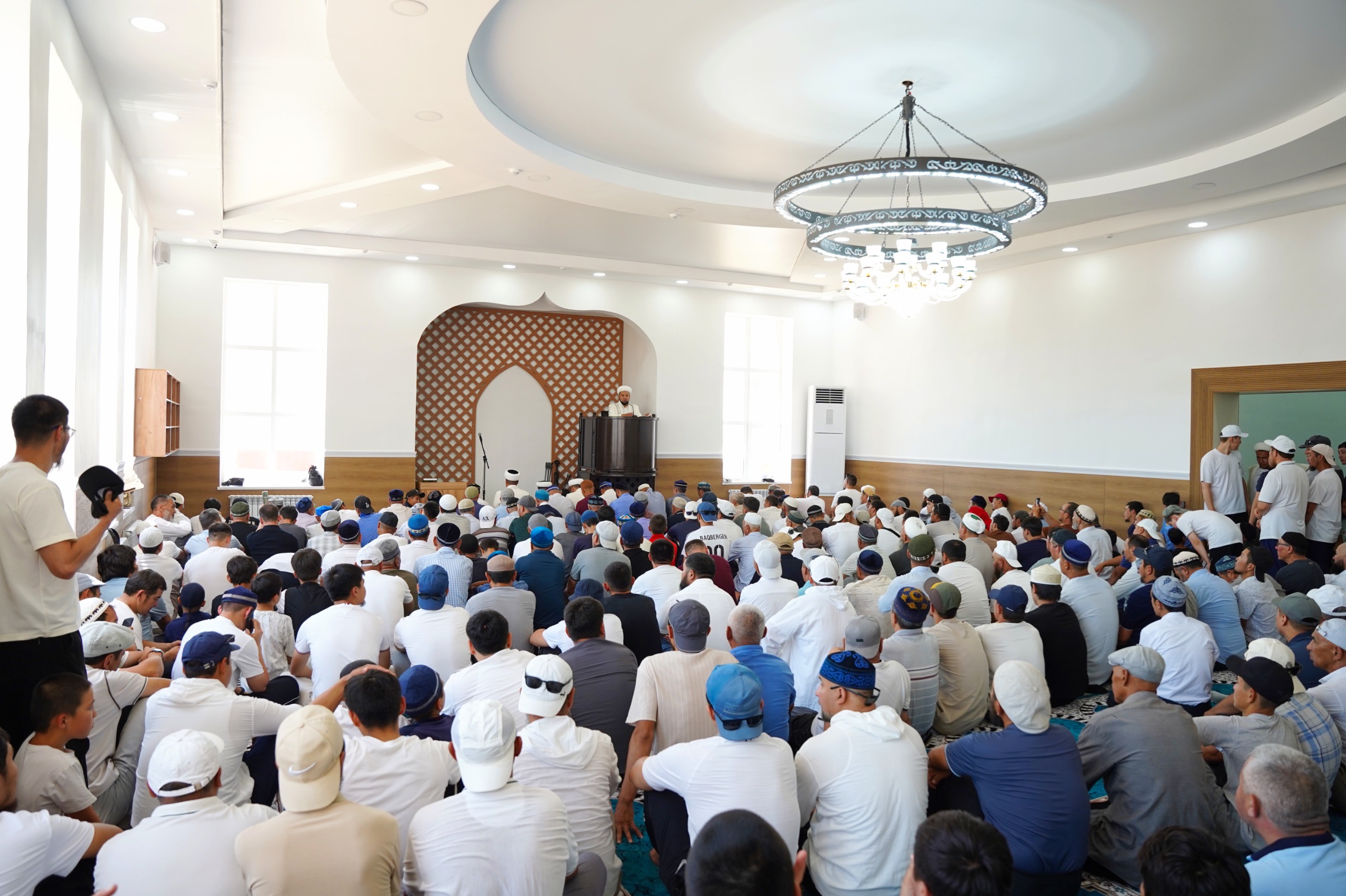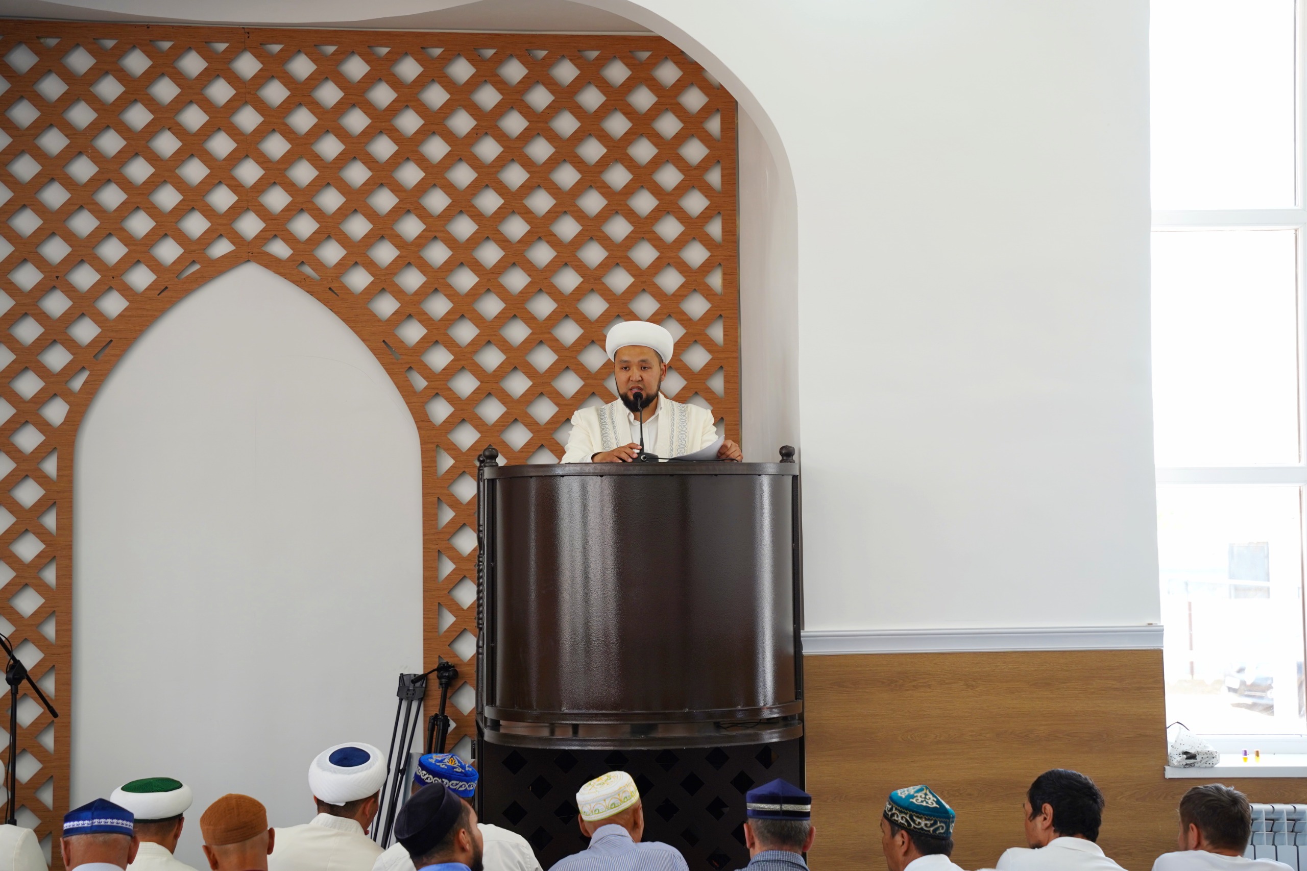 Ашылу салтанатынан кейін Ақтөбе облыстық «Нұр Ғасыр» мешітінің ұстазы Талғат Аманов жаңа мешітте «Тәрбие негізі – ұлттық құндылықта» тақырыбында уағызын өткізіп, намаз соңында жамағатпен бірге қол жайып, елге тыныштық тіледі.