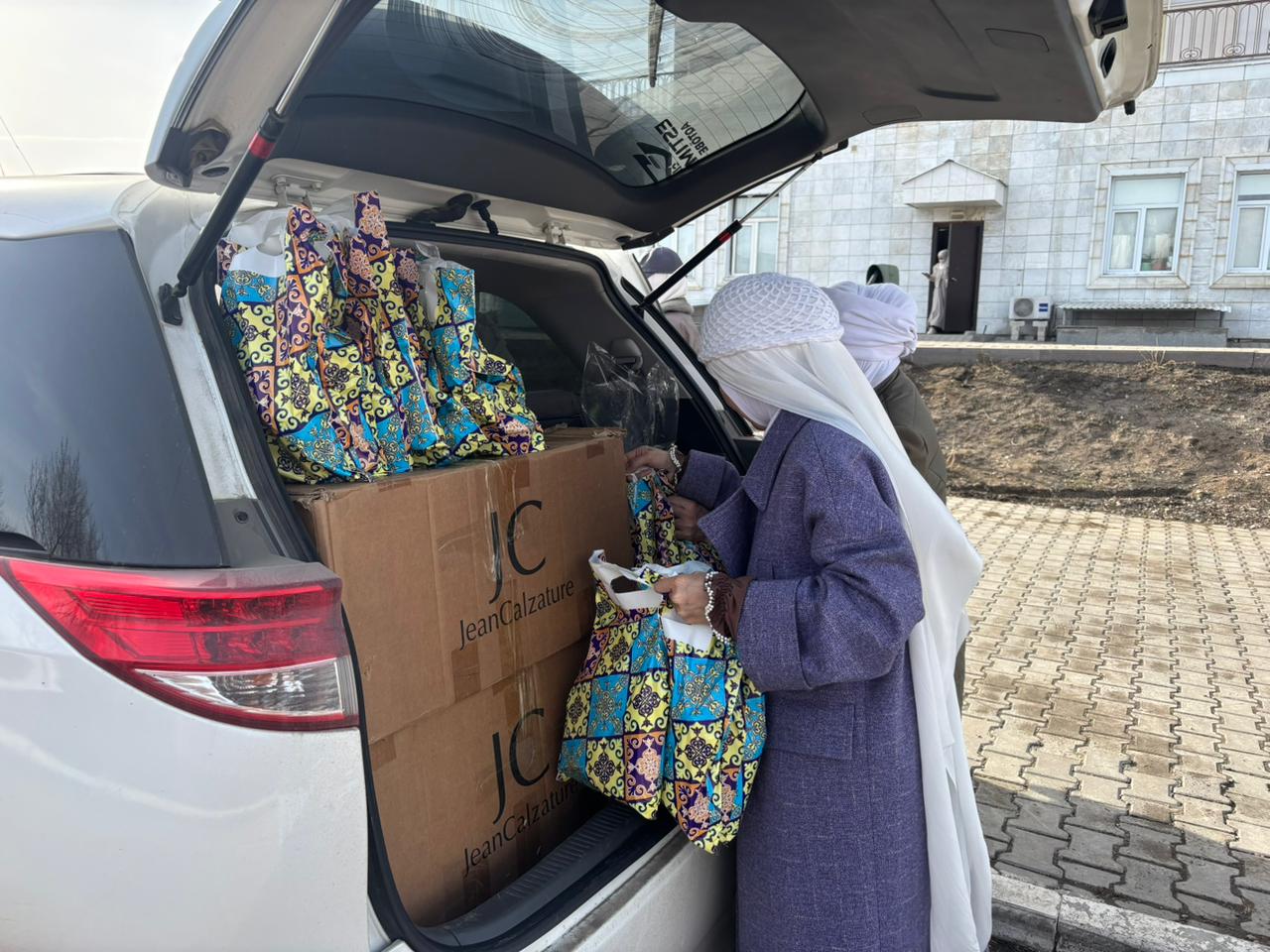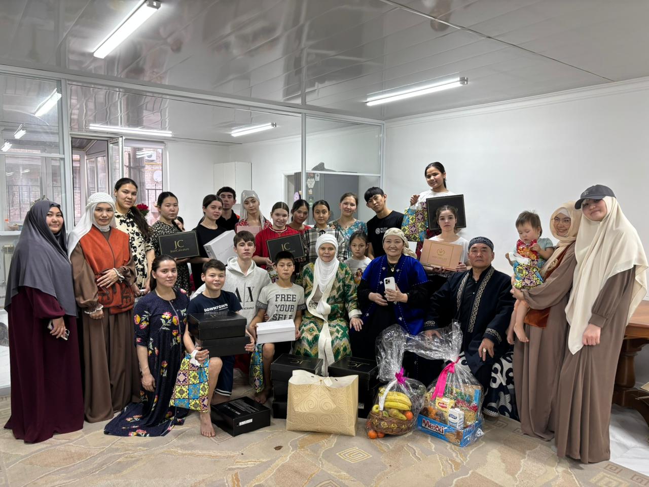 Кездесу барысында балаларға айттық тәтті сыйлықтар табысталып, отбасыға қажетті азық-түлік, жеміс-жидектер ұсынылды. Сонымен қатар, балалардың қажеттіліктері ескеріліп, қысқы және жазғы аяқ киімдер сыйға берілді. Бұл – жамағаттың бауырмалдық пен жанашырлыққа негізделген шынайы қамқорлығының көрінісі болды.
