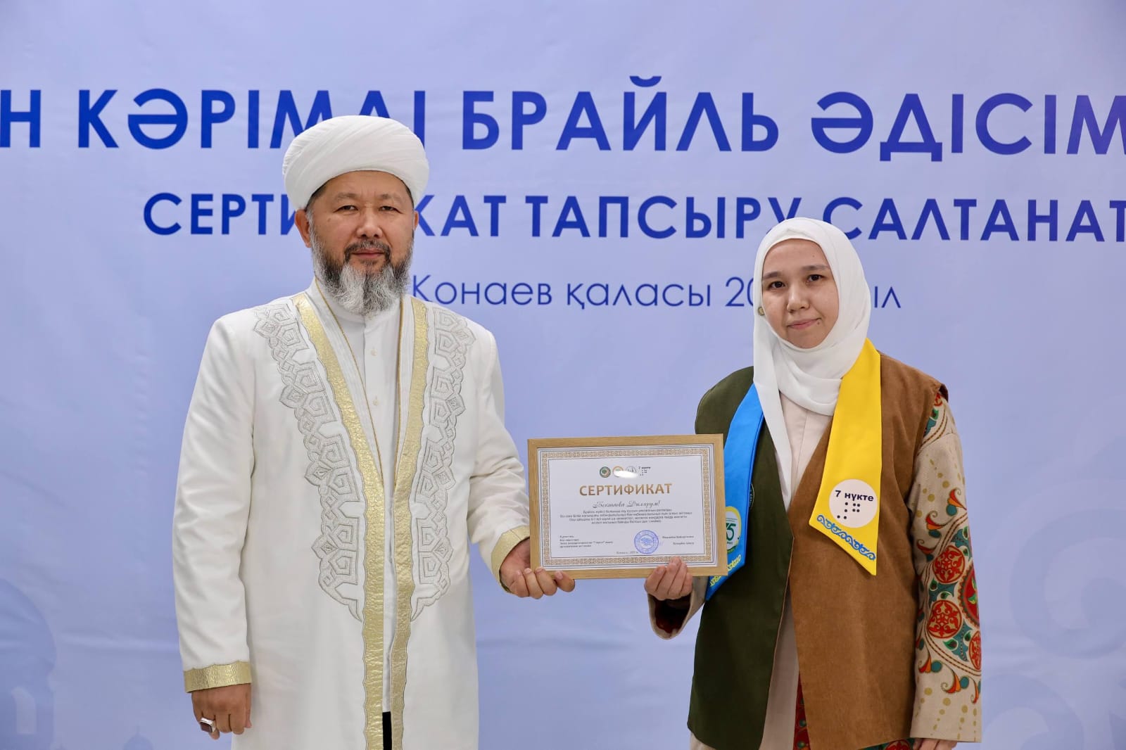 Іс-шара аясында Браиль нұсқасымен жарық көрген Құран Кәрім мен Құран әліппесінің танытымы өтіп, осы бағытта қызмет атқарып жүрген ұстаздарға біліктілігін арттыру курсын аяқтағандығы туралы сертификаттар табысталды. Аталған курсқа Қазақстанның бес өңірінен келген әйел ұстаздар қатысты. Олардың ішінде Ақтөбе облысы өкілдігіненде ұстаз бар.