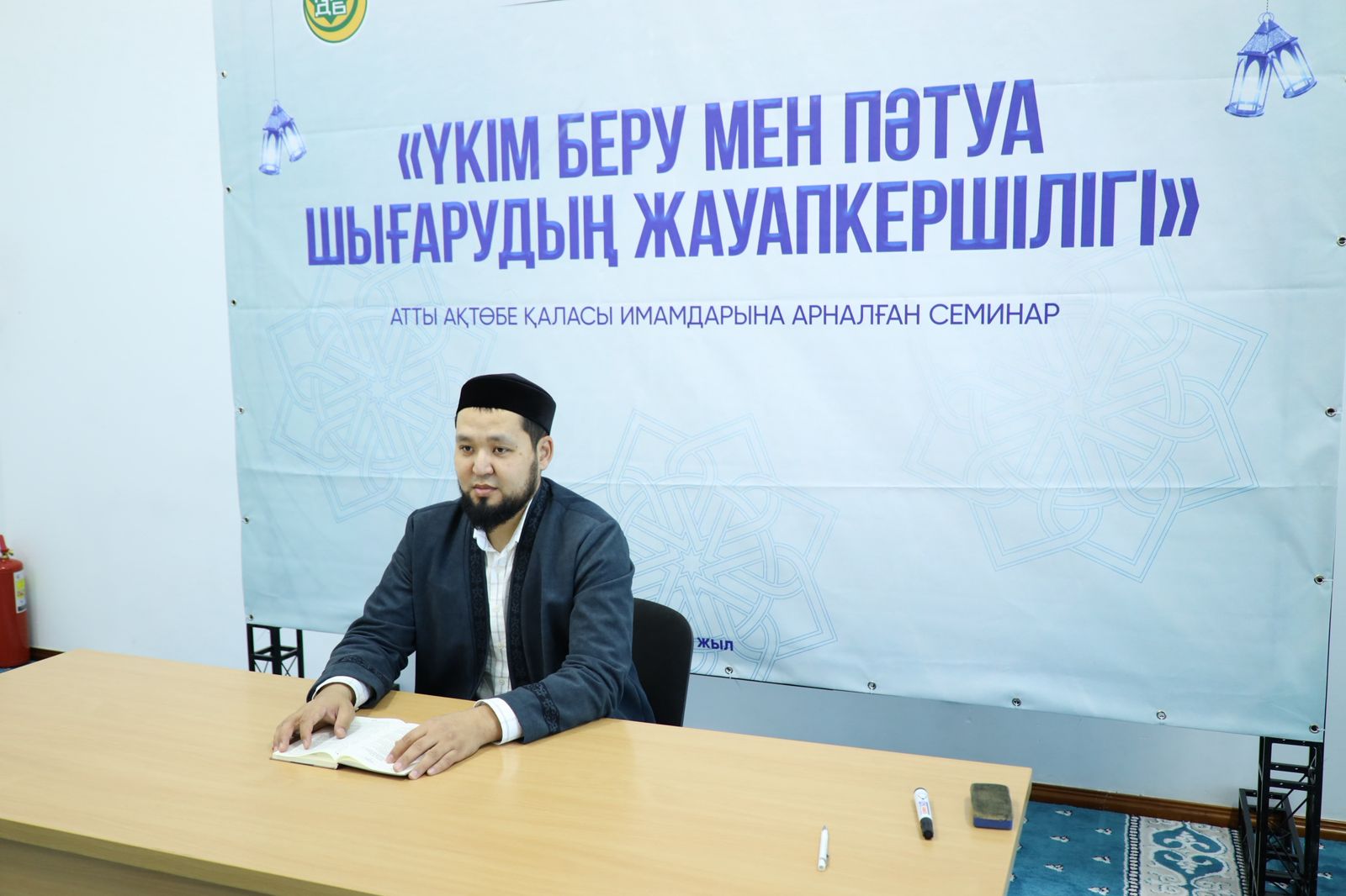 Семинарды Ақтөбе облысы бойынша «Шариғат және пәтуа» бөлімінің жауапты маманы, облыстық орталық «Нұр Ғасыр» мешітінің ұстазы Талғат Аманов жүргізді.