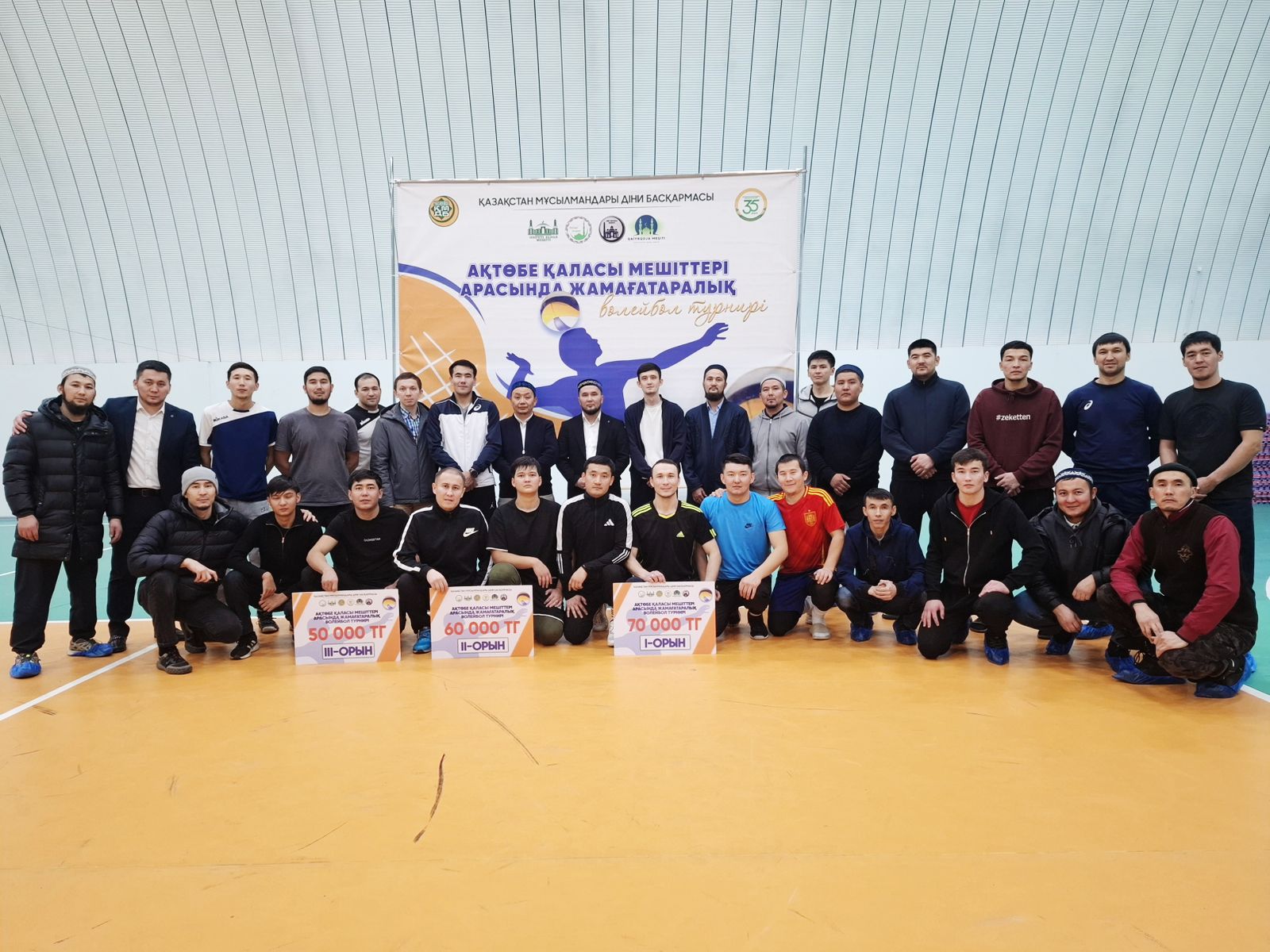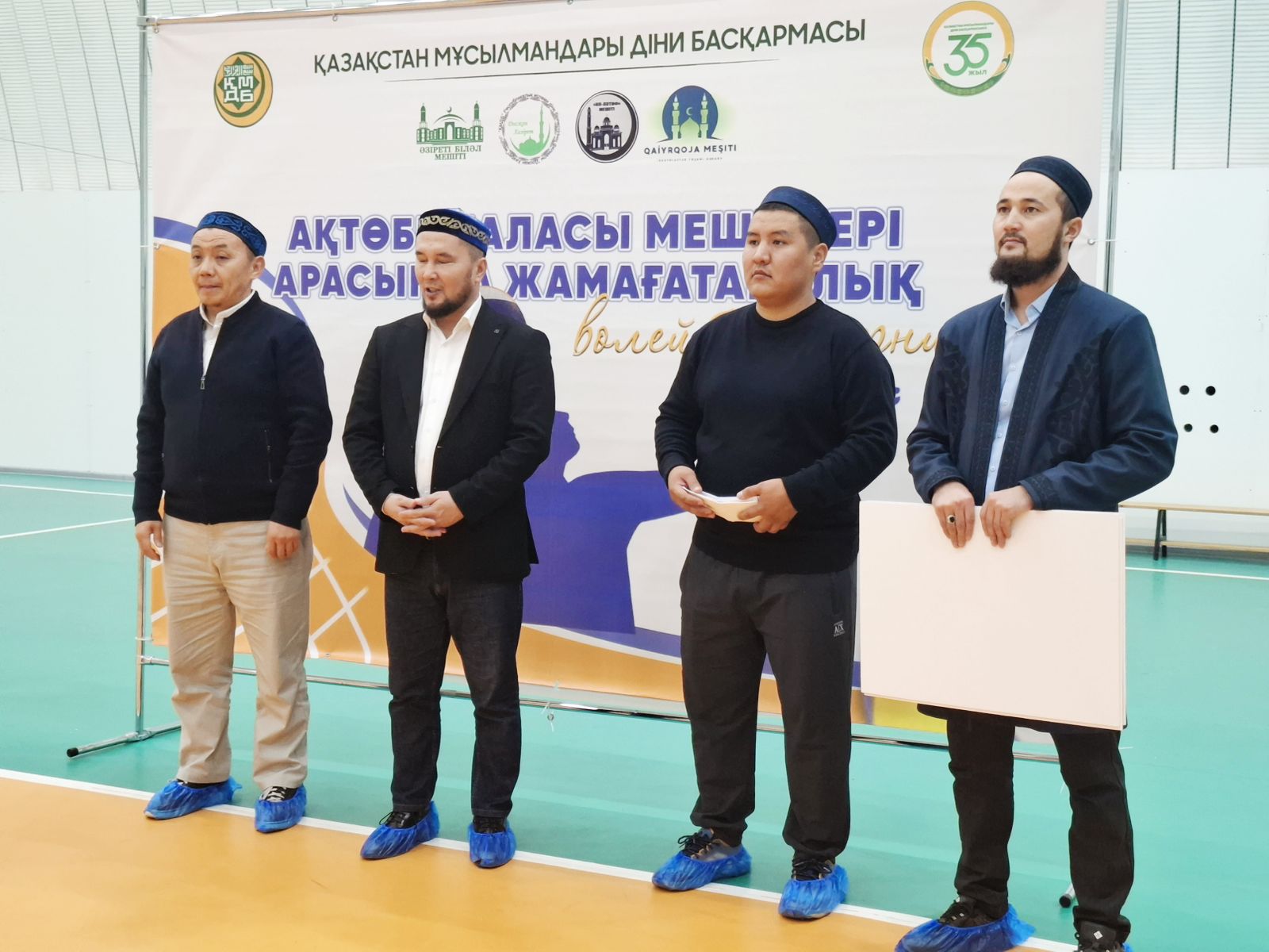 ҚМДБ-ның жылдық жоспары аясында Ақтөбе қаласының Бас имамы Алмат Әлидің бастамасымен «Дін мен дәстүр» бағыты бойынша Ақтөбе қаласындағы «Қайырқожа», «Әзіреті Біләл», «Досжан хазірет», «Әл-ләтиф» мешіттерінің ұйымдастыруымен қала мешіттерінің жамағаты арасында волейболдан турнир өтті.