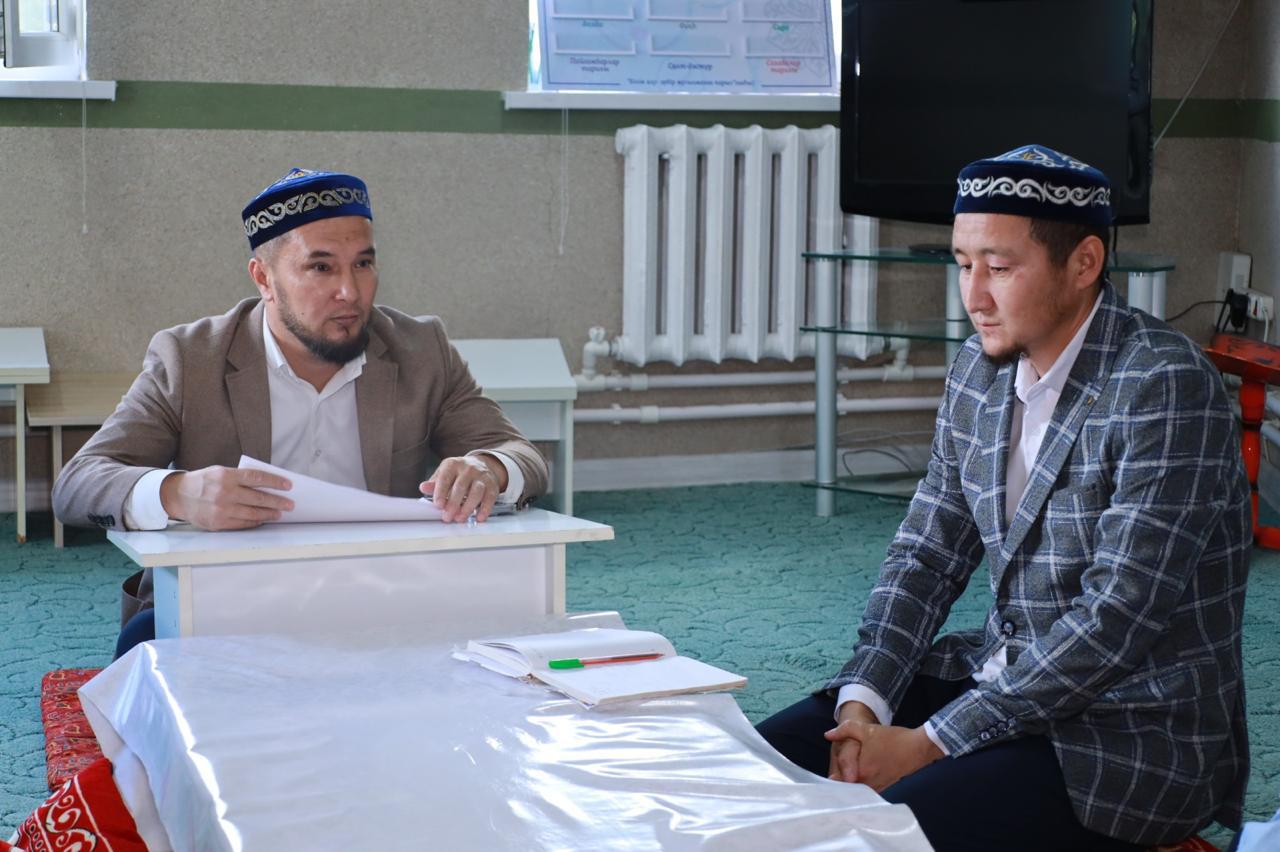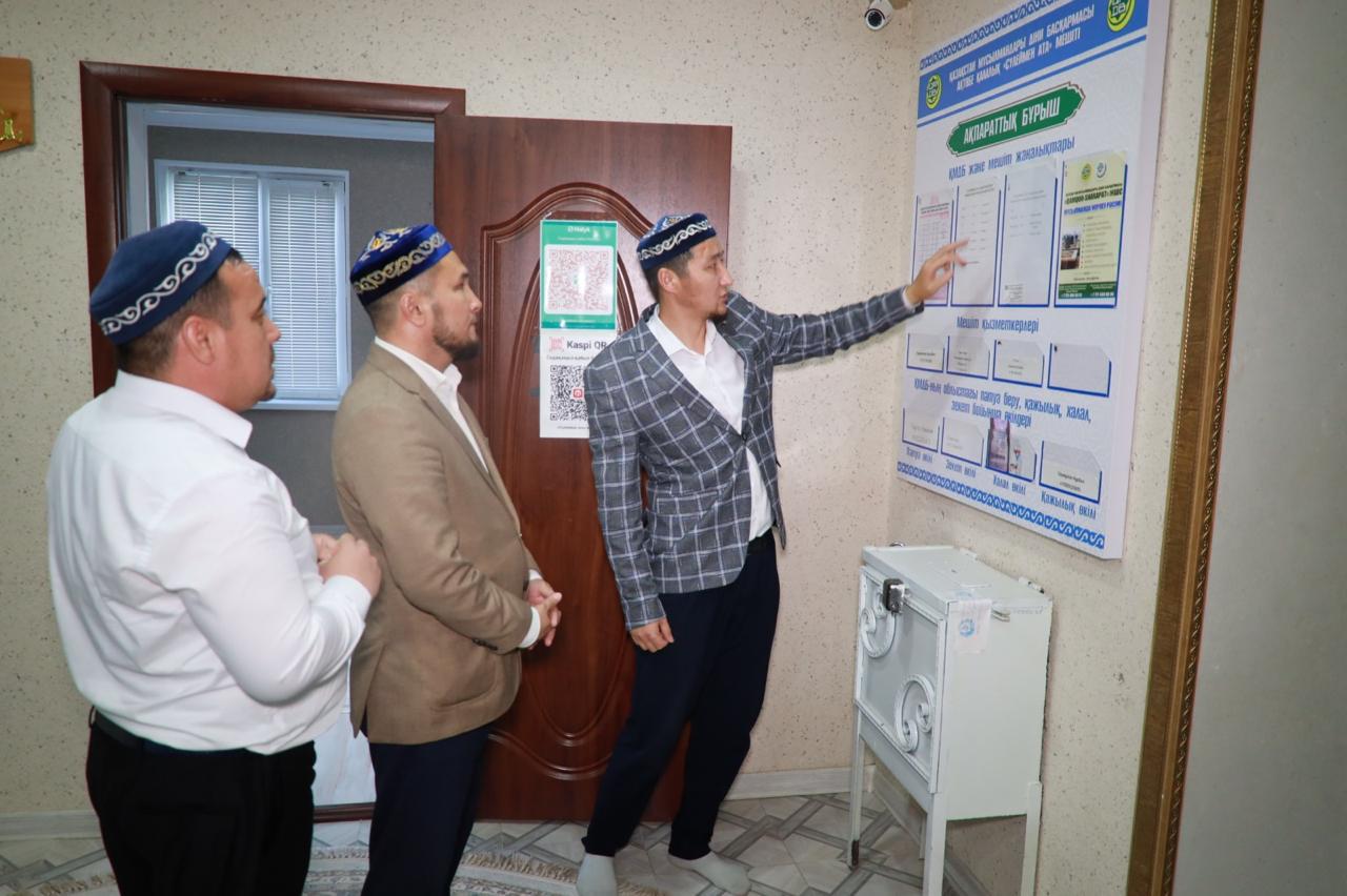 Бас имам құлшылық үйінің ішкі жағдайымен танысып, ұжыммен жүздесті. Сондай-ақ жиналыс барысында мешіт қызметкерлерімен сұхбаттасып, талап-тілектерін талқылады.