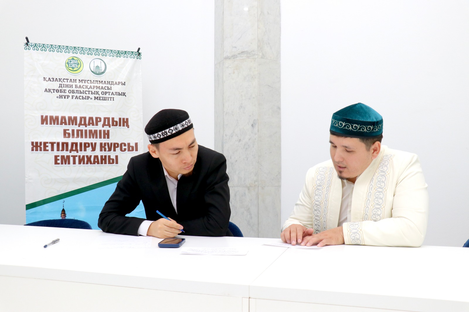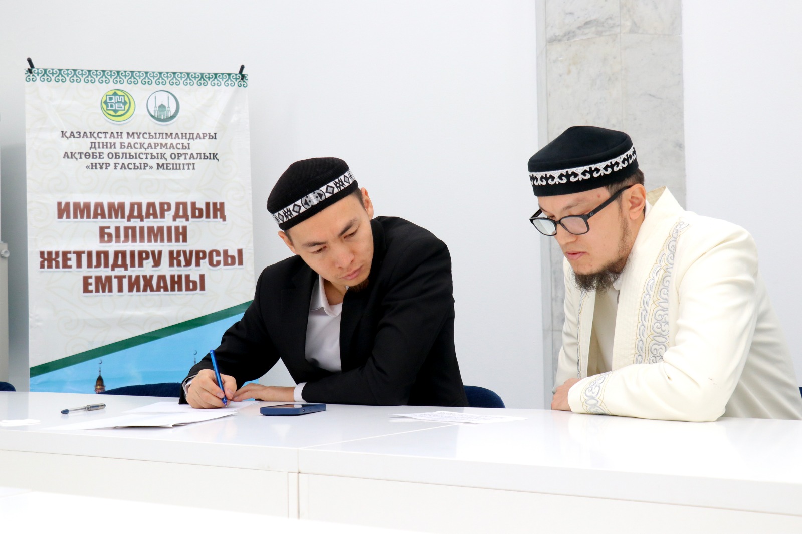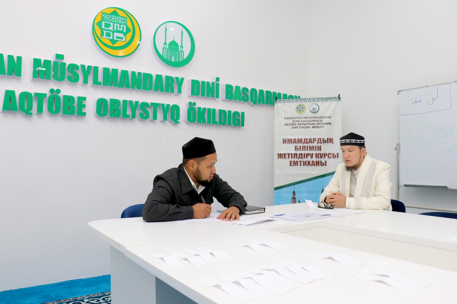 Арнайы емтиханды Ақтөбе облыстық орталық «Нұр Ғасыр» мешітінің ұстаздары, ҚМДБ-ның Ақтөбе облысы бойынша «Уағыз-насихат» бағытының жауапты меңгерушісі Смағулов Нұрбол және «Діни оқу-ағарту» бөлімінің жауапты маманы Аймырза Досбол жүргізді.