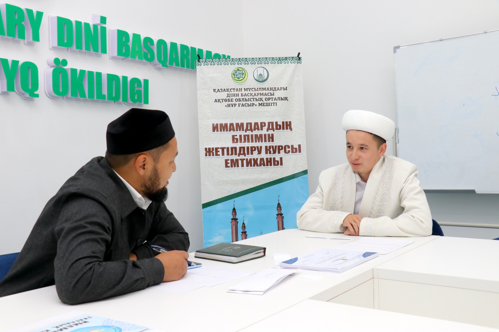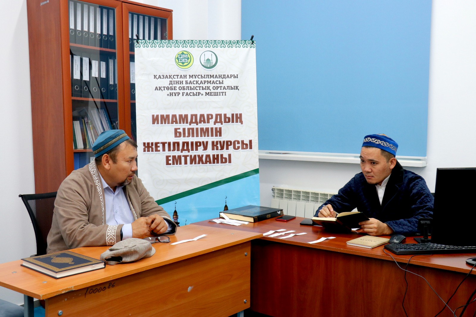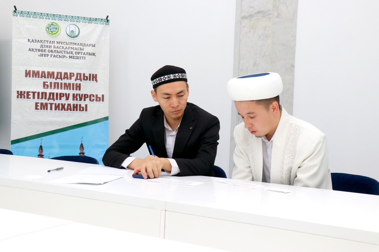 Арнайы емтиханды Ақтөбе облыстық орталық «Нұр Ғасыр» мешітінің ұстаздары, ҚМДБ-ның Ақтөбе облысы бойынша «Уағыз-насихат» бағытының жауапты меңгерушісі Смағулов Нұрбол және «Діни оқу-ағарту» бөлімінің жауапты маманы Аймырза Досбол жүргізді.