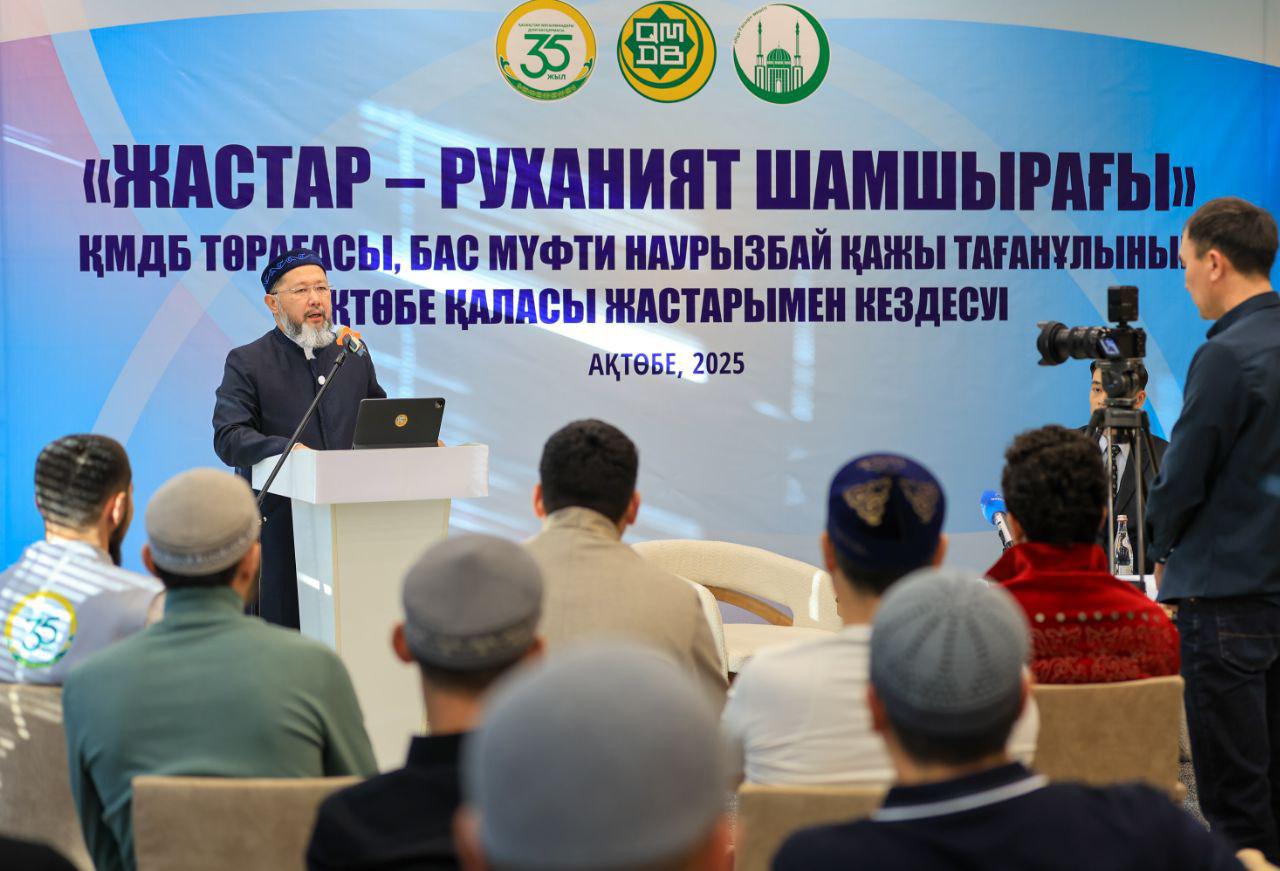 ҚМДБ Төрағасы, Бас мүфти Наурызбай қажы Тағанұлы Ақтөбе облысына жасаған жұмыс сапары барысында «Жастар — руханият шамшырағы» атты тақырыпта Ақтөбе өңірінің белсенді жастарымен кездесті.