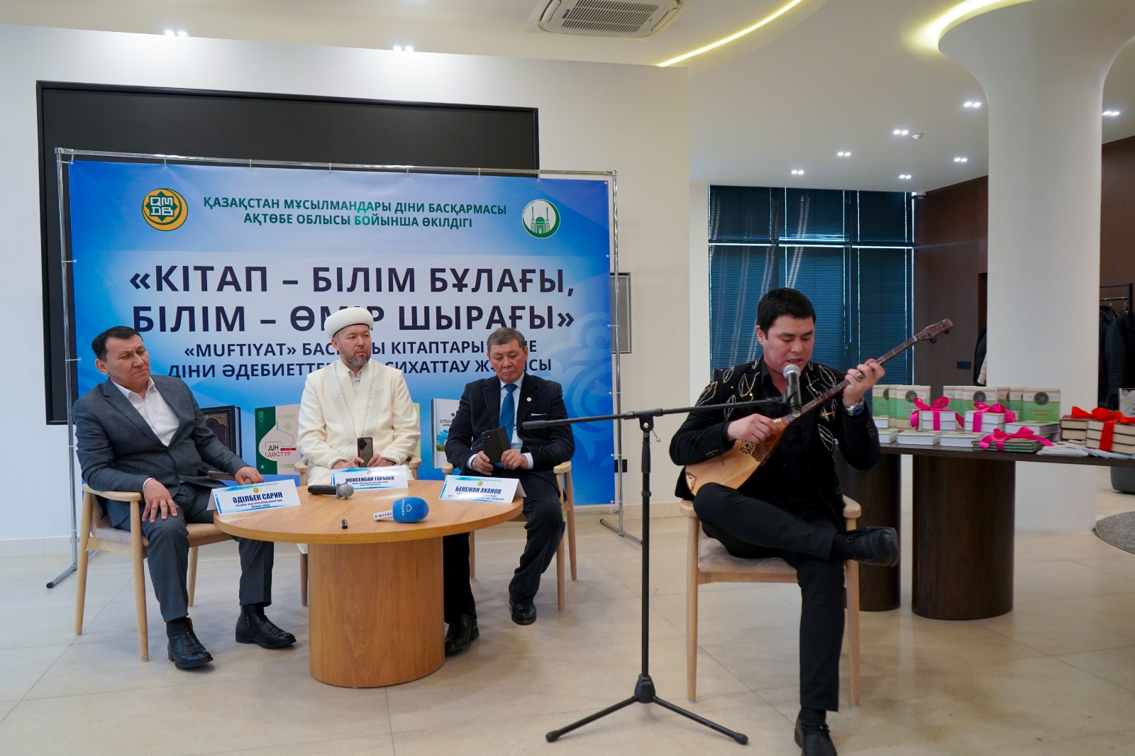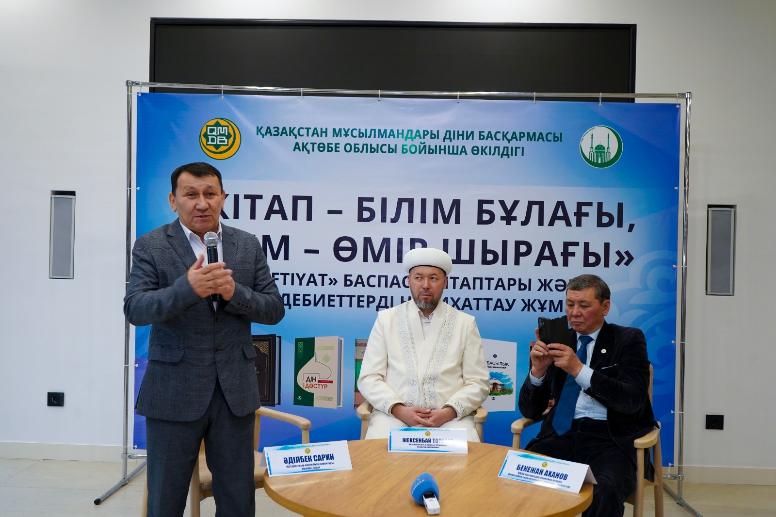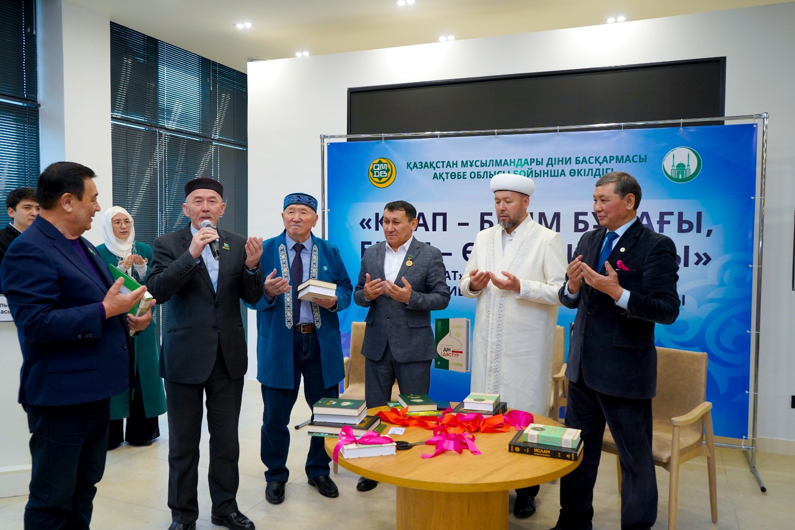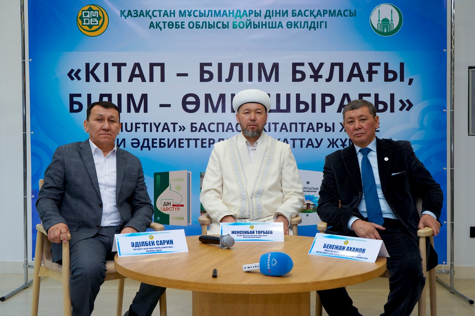 Бүгінгі «Кітап — білім бұлағы, білім — өмір шырағы» шарасында ҚМДБ баспасынан шыққан жаңа туындылар «Ислам энциклопедиясы 2-ші том», «Балаларға арналған пайғамбарлар қиссасы», «Құран інжулері» және Әділбек Сариннің «Пайғамбар жыры» кітабының лентасы қиылып, оқырманға жол тартты. Кітаптың лентасын Ақтөбе облысының бас биі Нұрлан Ізденұлы мен дін жанашыры Садақбай қажы Өтегенов кесті. Шараны Әділбек Сариннің шәкірті жыршы Жеңіс Елемесов жүргізді.