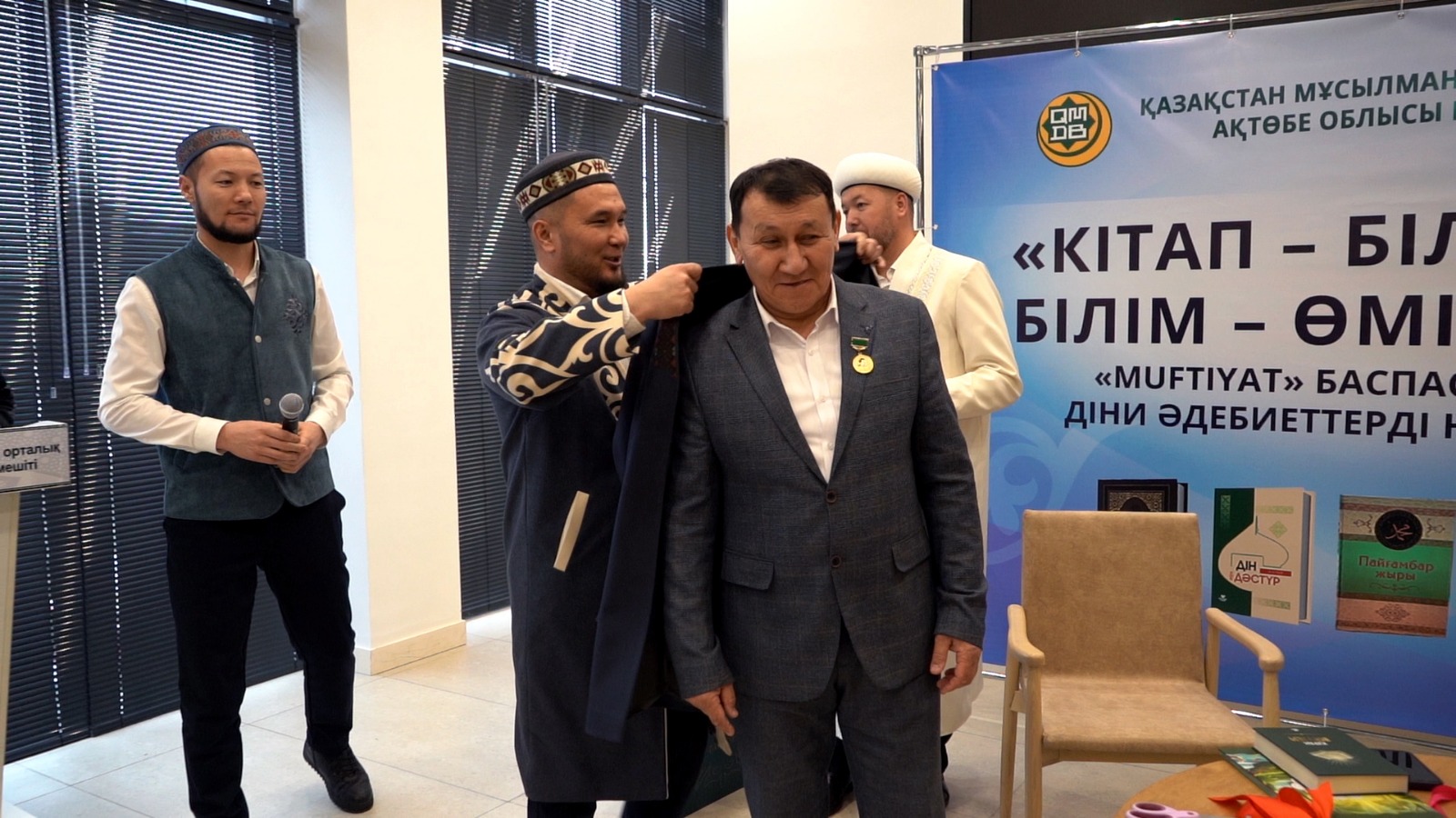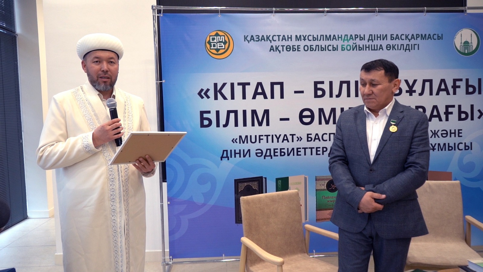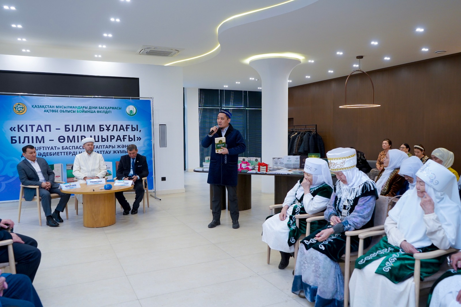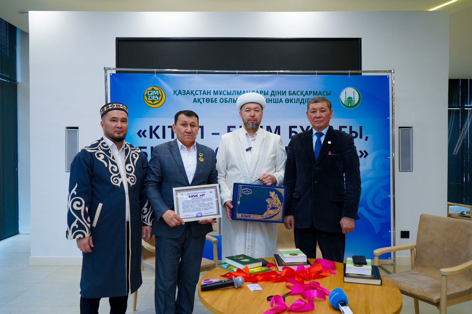 Бүгінгі «Кітап — білім бұлағы, білім — өмір шырағы» шарасында ҚМДБ баспасынан шыққан жаңа туындылар «Ислам энциклопедиясы 2-ші том», «Балаларға арналған пайғамбарлар қиссасы», «Құран інжулері» және Әділбек Сариннің «Пайғамбар жыры» кітабының лентасы қиылып, оқырманға жол тартты. Кітаптың лентасын Ақтөбе облысының бас биі Нұрлан Ізденұлы мен дін жанашыры Садақбай қажы Өтегенов кесті. Шараны Әділбек Сариннің шәкірті жыршы Жеңіс Елемесов жүргізді.