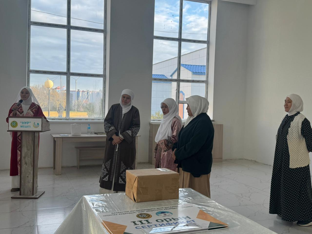 Аталған сайысқа Ақтөбе қаласынан облыс бойынша «Әйел-қыздар» секторының меңгерушісі Кенжегүл Қушқарова мен Ақтөбе қалалық орталық мешіттің ұстаздары Қобланқызы Айзат пен Ерғалиева Гүлжайнар қари қатысып, әділқазы ретінде төрағалық етті.