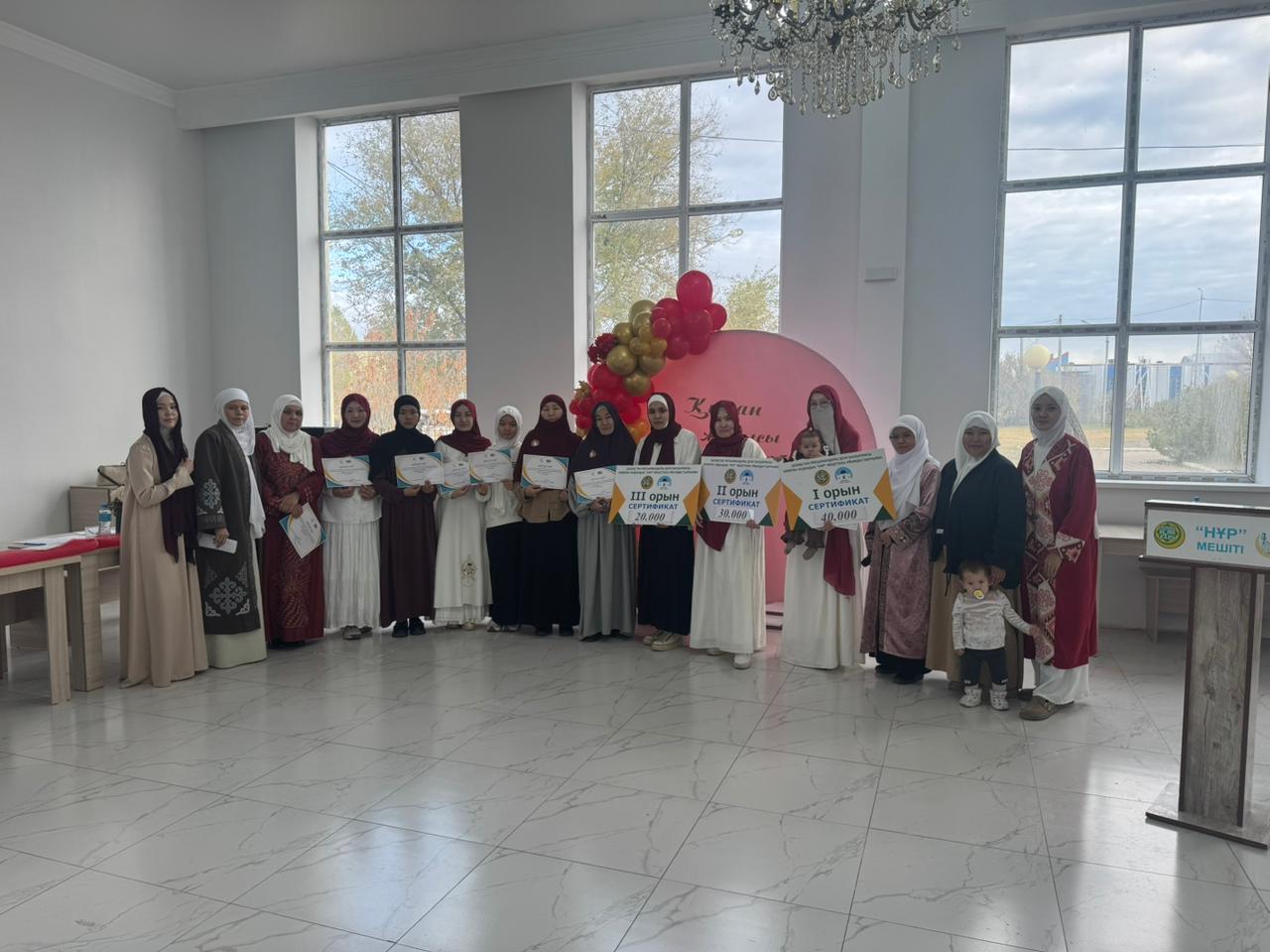 ҚМДБ-ның 35 жылдығыга орай «Ислам және отбасы құндылығы жылы» аясында Республика күні қарсаңында Хромтау аудандық «Нұр» мешітінің «Әйел-қыздар» секторы мен «Болашақ жолы» ҚБ ұйымдастыруымен әйел жамағаты арасында Құран Кәрімді жатқа және мәнерлеп оқудан жарыс өтті.