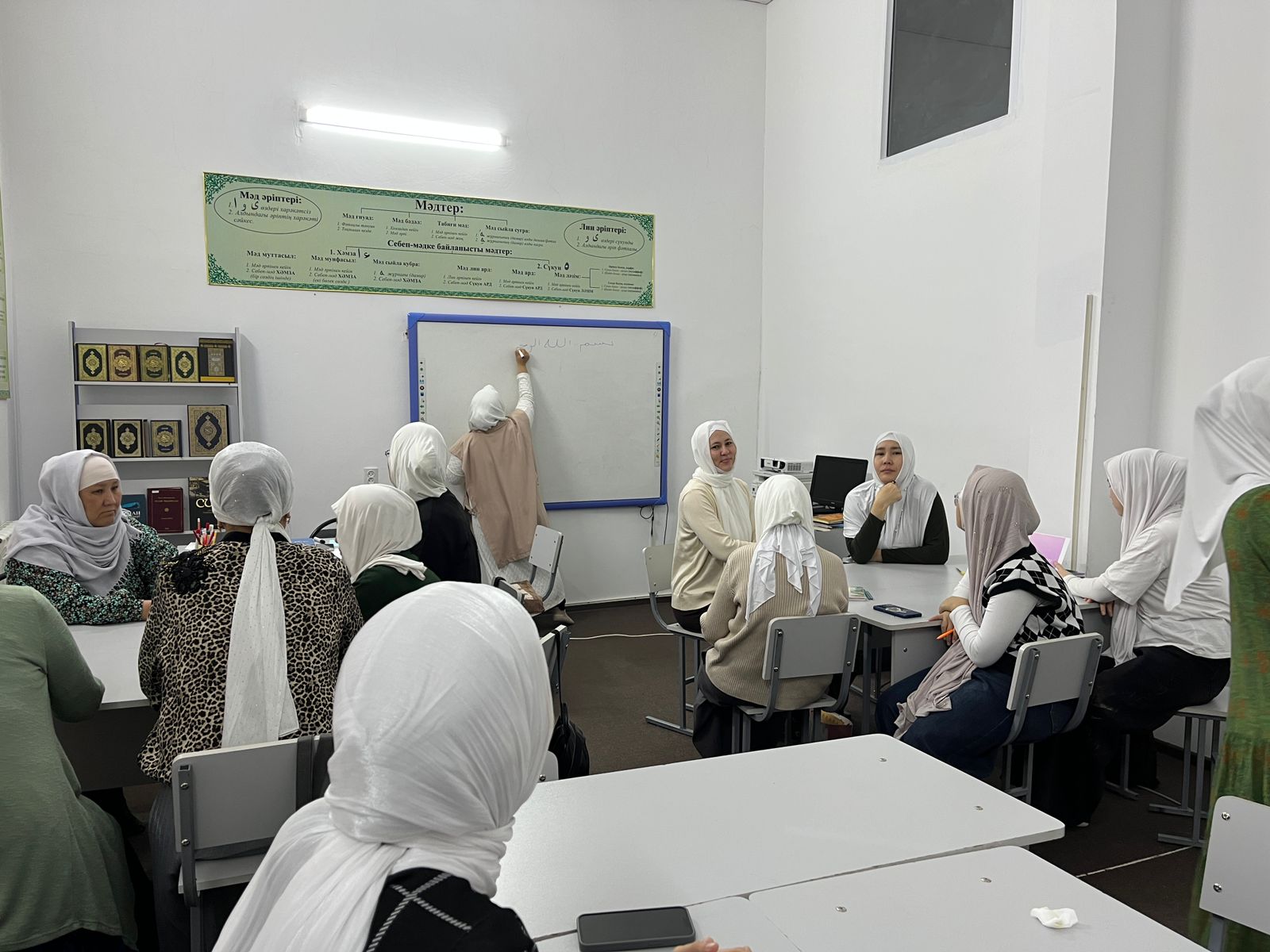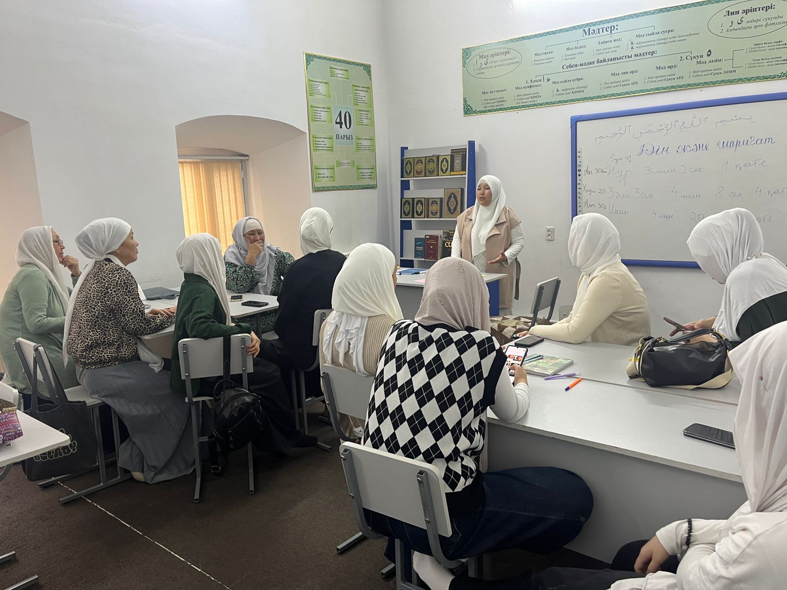 Ақтөбе қалалық орталық мешітінің жанындағы әйелдер орталығында жамағатқа арналған «Ислам ғибадаты» атты кітаптың негізінде дін және шариғат тақырыптарын қамтыған білім сайысы ұйымдастырылды.