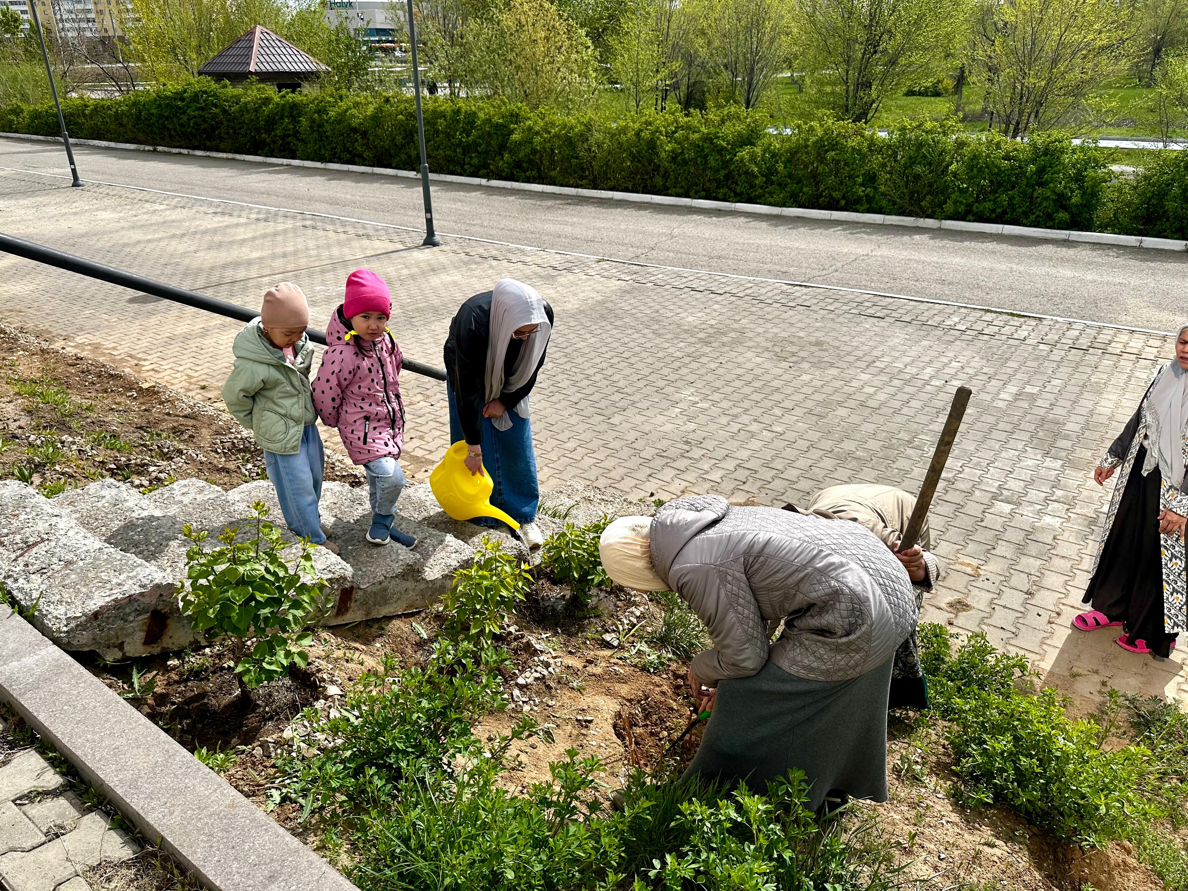 Дінімізде ағаш отырғызу – сауапты амалдардың бірі. Ардақты Пайғамбарымыздың (Оған Алланың салауаты мен сәлемі болсын) «Егер мұсылман бір ағаш отырғызса немесе егін ексе, одан адам, құс не жануар жесе – ол оған садақа болып жазылады», – деген хадисіне амал ете отырып, қоршаған ортаның көркеюіне үлес қосып, шие, алмұрт көшеттері мен гүлдер отырғызды.