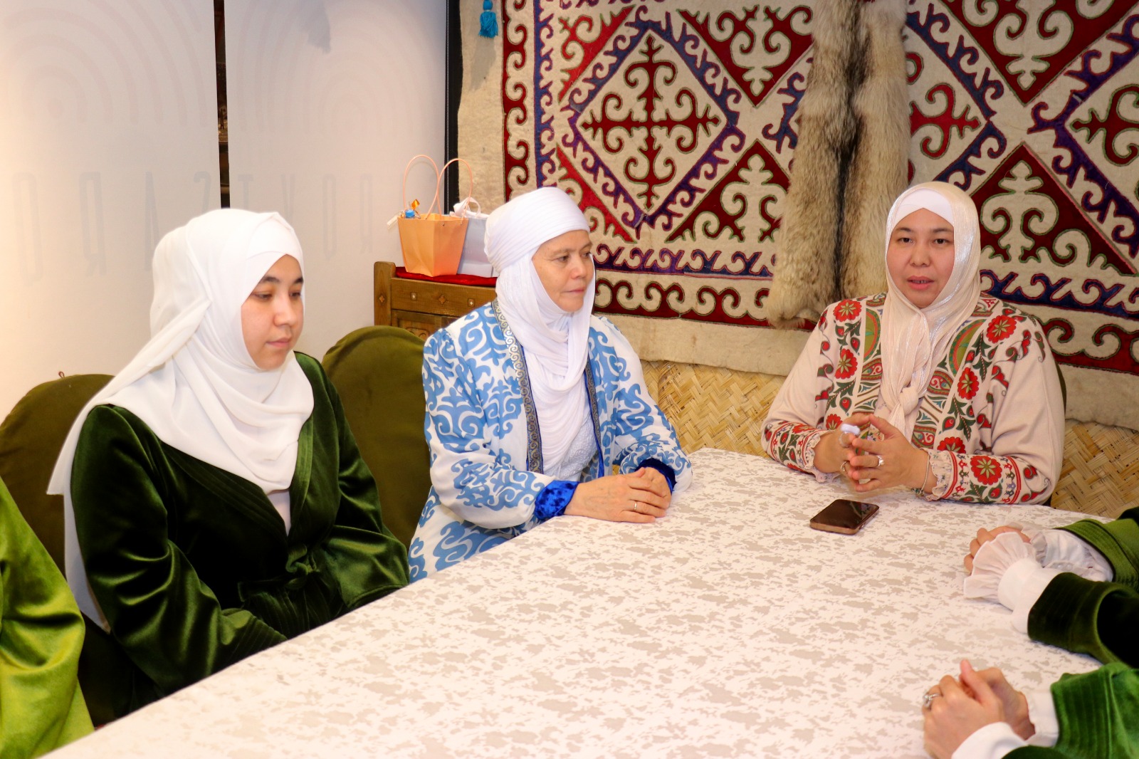 Жамағат құрметті қонақты жылы ықыласпен қарсы алып, Ақтөбе өңірінің қонақжай халқы атынан ізгі тілегін жеткізіп, әжелер ақ батасын берді.