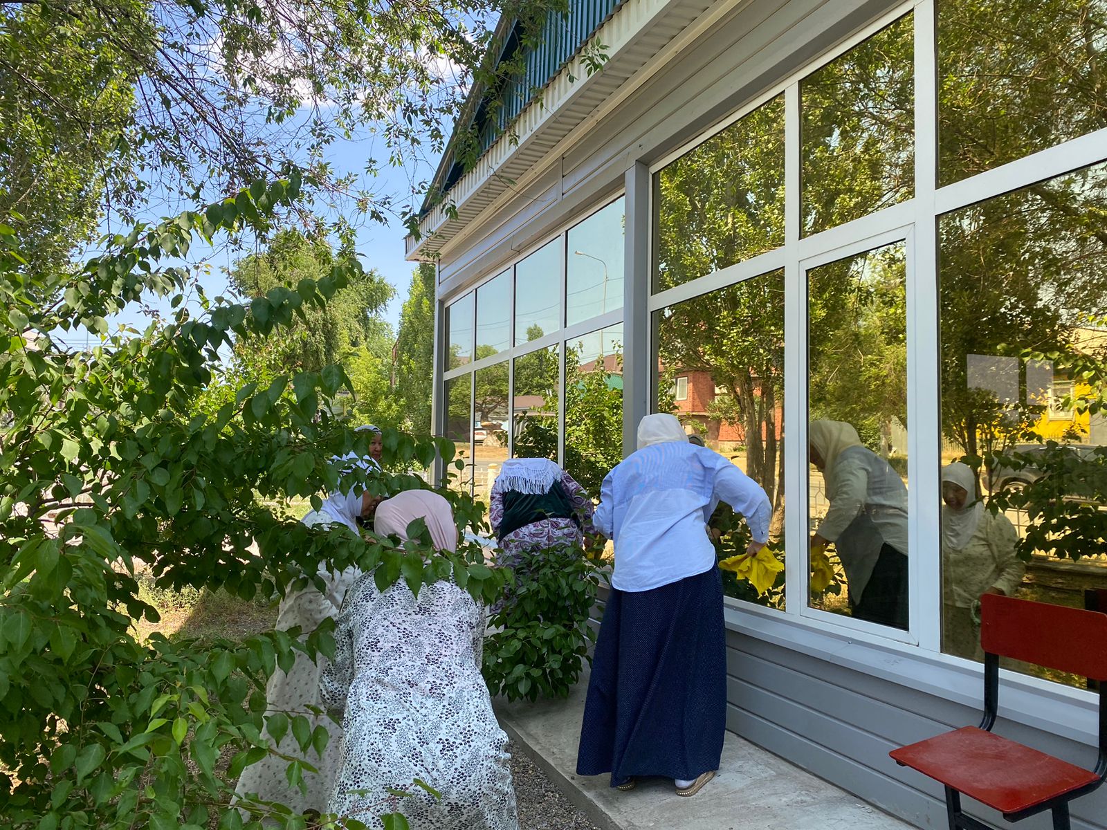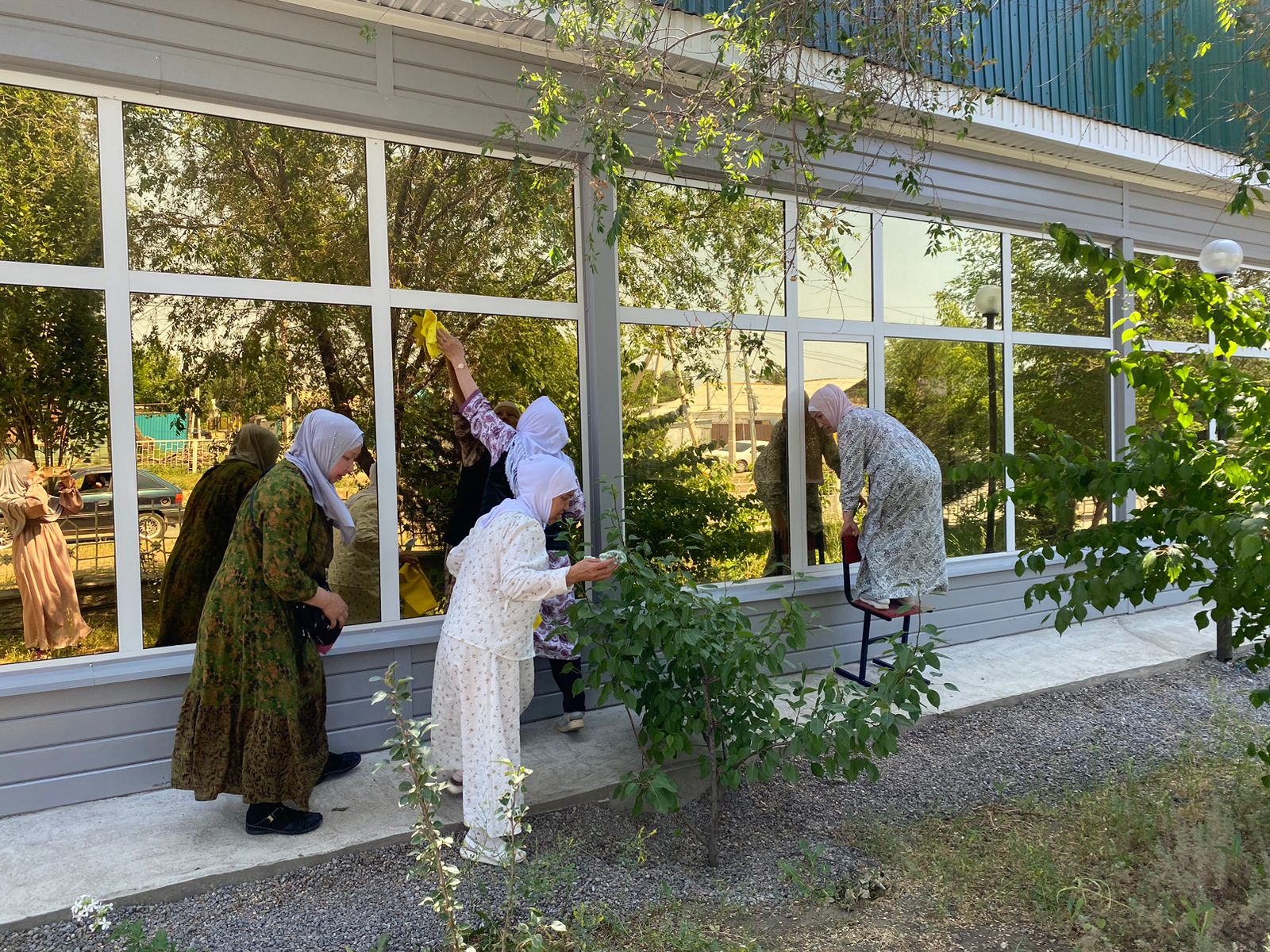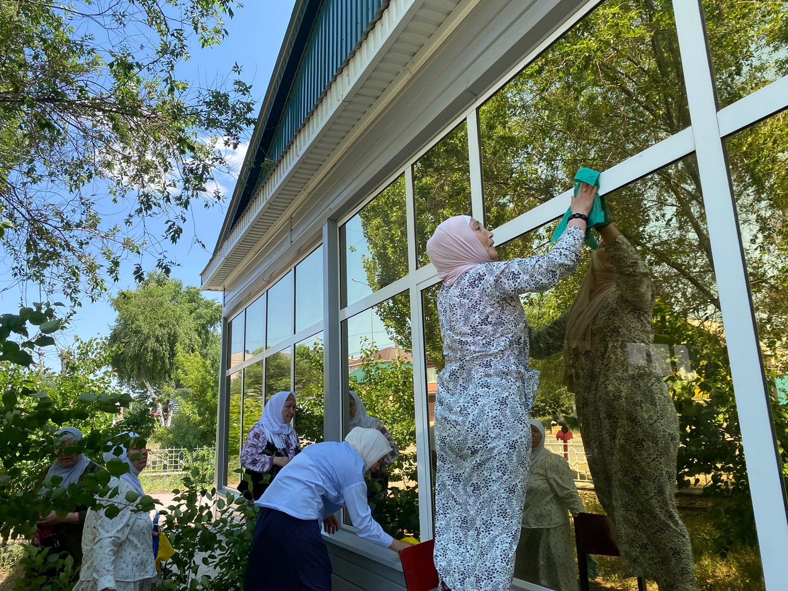 Мешіттің әйел жамағаты құлшылық үйінің терезелерін мұнтаздай етіп, өзге де жерлерді ықтиятпен тазалап, бірлесе жұмыстар атқарды.