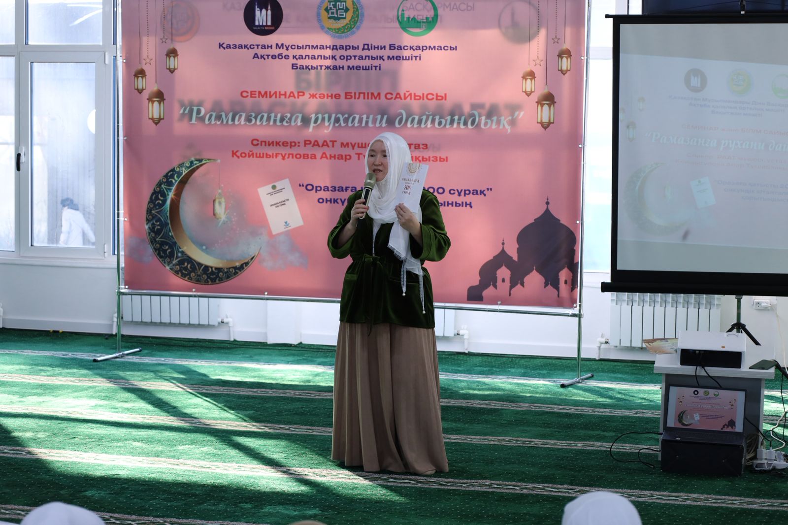 Одан кейін мешіт ұстазы Қойшығұлова Анар “Рамазанға рухани дайындық” тақырыбында уағыз-насихат жүргізді. Насихат барысында ол Рамазан айын мүмкіндік айы ретінде қабылдау, уақыттың қадірін білу, нәпсімен күрес, жүректі тазарту және құлшылықтағы тұрақтылық мәселелеріне кеңінен тоқталды.