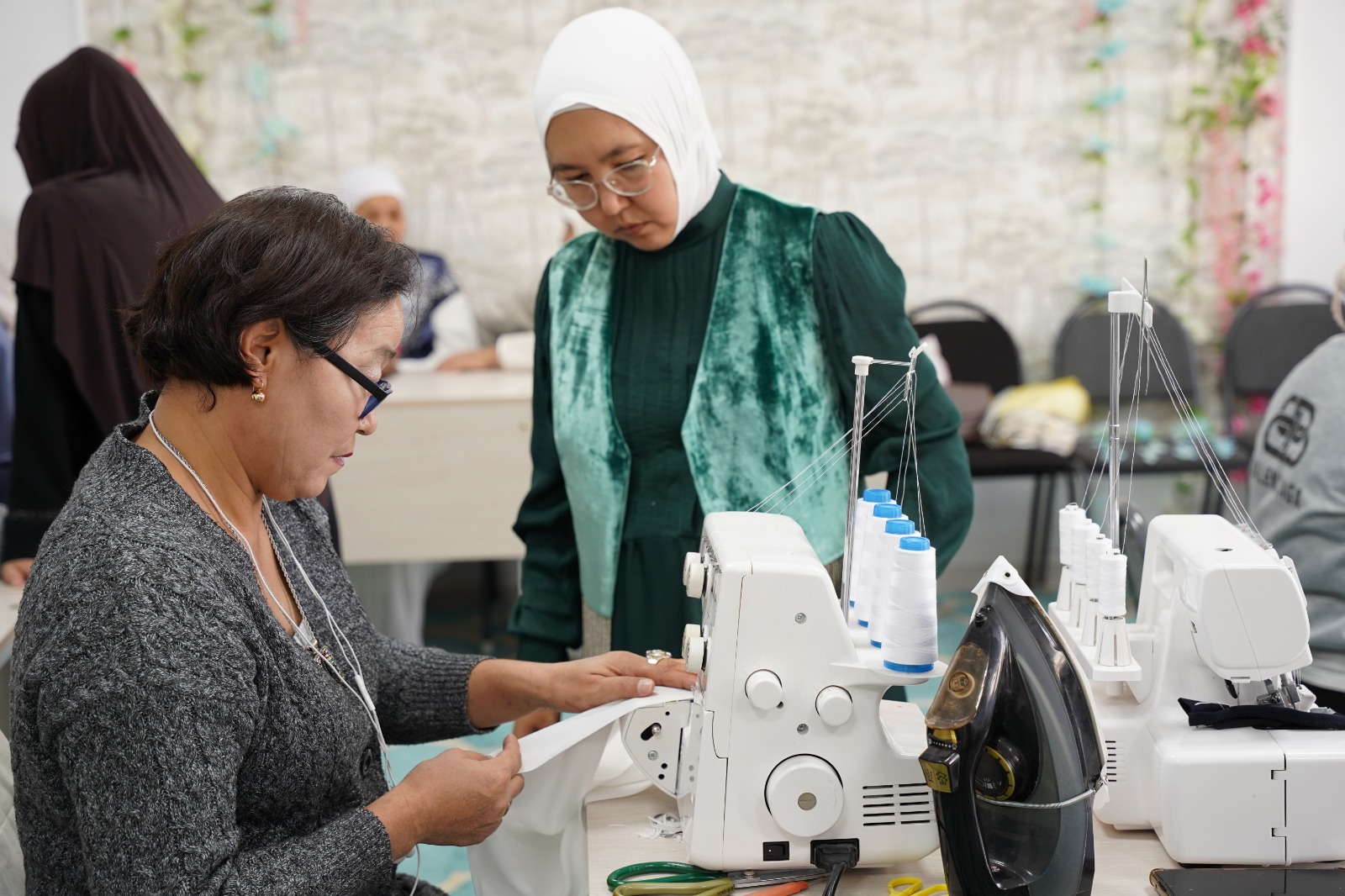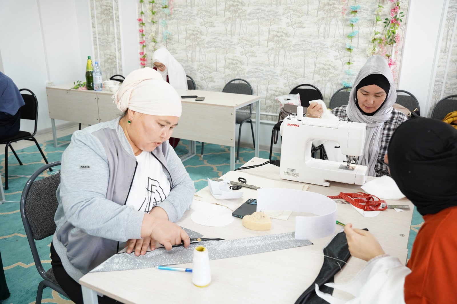 Шалқар аудандық «Матай Қоқанұлы» мешітінің ұйымдастыруымен «Ислам және отбасы құндылығы жылы» аясында 4 бағыттың бірі – «Дін мен дәстүр» бағыты аясында кимешек тігуден әйел жамағатына арналған шеберлік сағаты өтті.