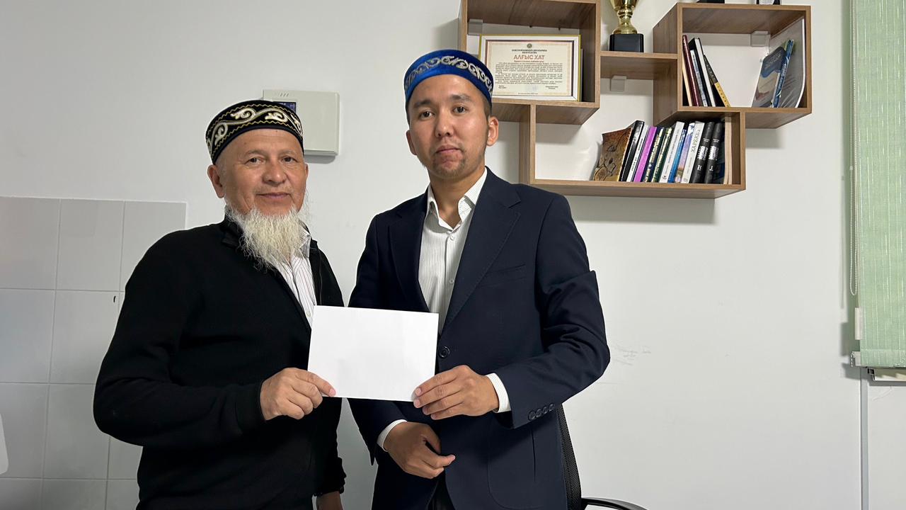 Өзінің бұл игі ісі көпке үлгі болсын деген мақсатпен әрі халықтың руханиятын көтеріп, ел үшін аянбай қызмет атқарып жүрген азаматтарға жылы лебізім деп, 7 қызметкерге жалпы соммасы 500 мың теңгені құрайтын қаржылай көмекті табыс етті.