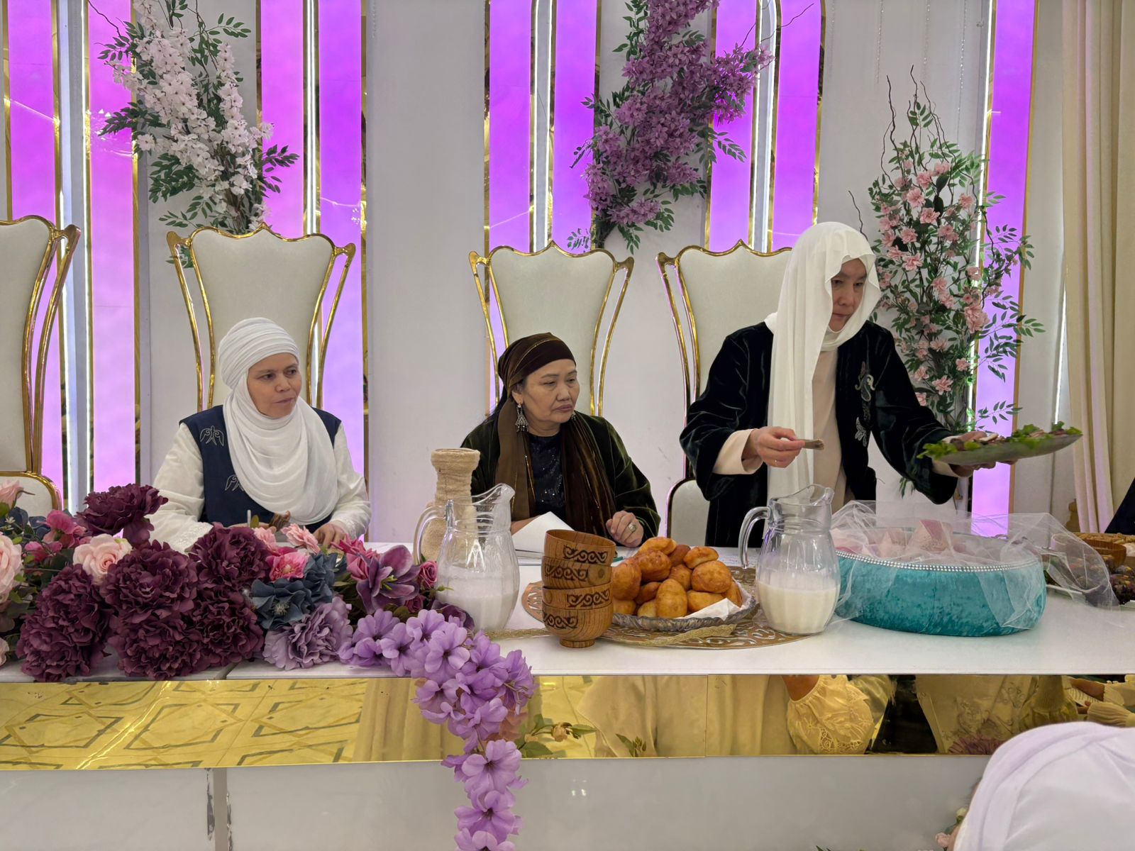 Сонымен қатар ақ жаулықты аналарға деген алғыс пен құрметтің айқын көрінісі ретінде «Шырайлым» клубының қыздары шынайы ықыласпен өз қолдарымен тіккен әсем ас үйге арналған арнайы жиынтығын тарту етті. Қатысушылар ұйымдастырушыларға алғыстарын білдіріп, көпшілікке ақ батасын берді.
