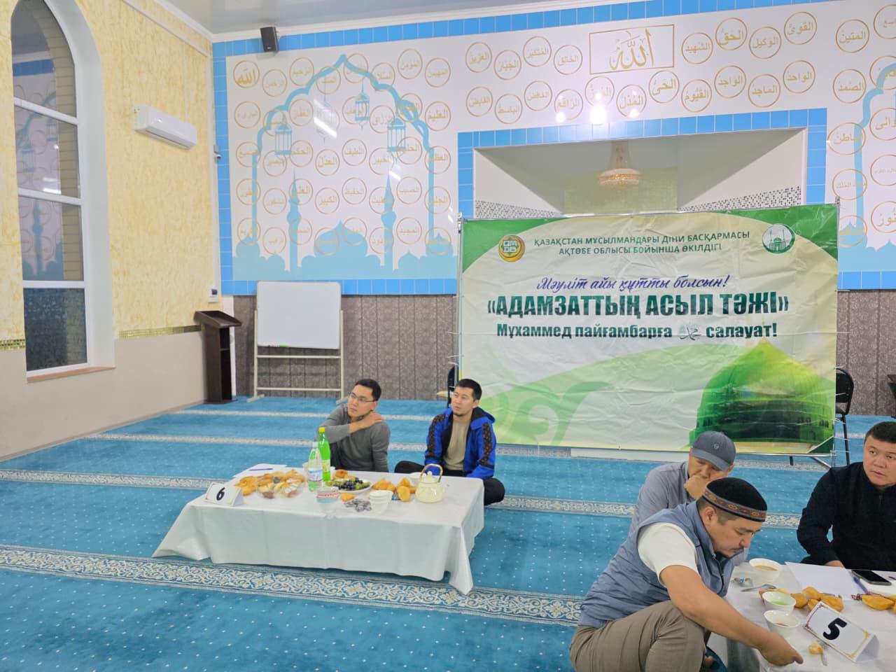 Мұғалжар ауданында Қандыағаш қалалық «Қадырәлі ата» мешітінің ұйымдастыруымен «Адамзаттың асыл тәжі» атты пайғамбарымызға (оған Алланың салауаты мен сәлемі болсын) Мәулітіне арналған рухани кеш өтті.