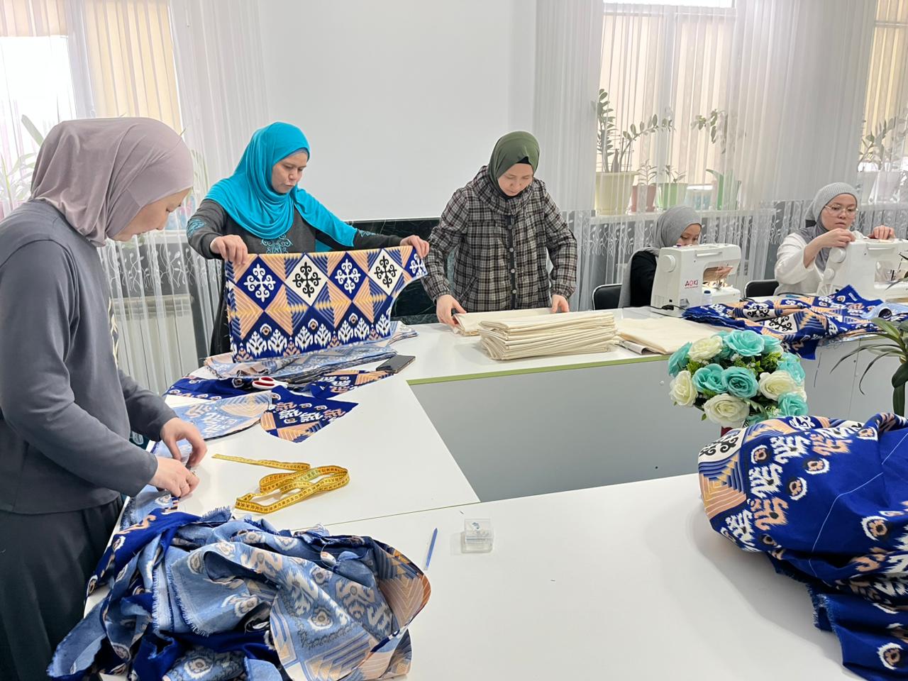 Мастер-класста сыпыра, алжапқыш сияқты ас үйде және тұрмыстық қолдануға арналған жиынтықтар тігіліп, қатысушыларға практикалық дағдылар берілді.