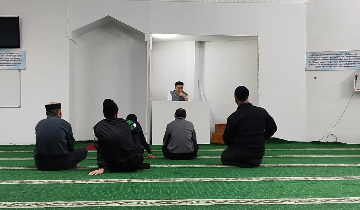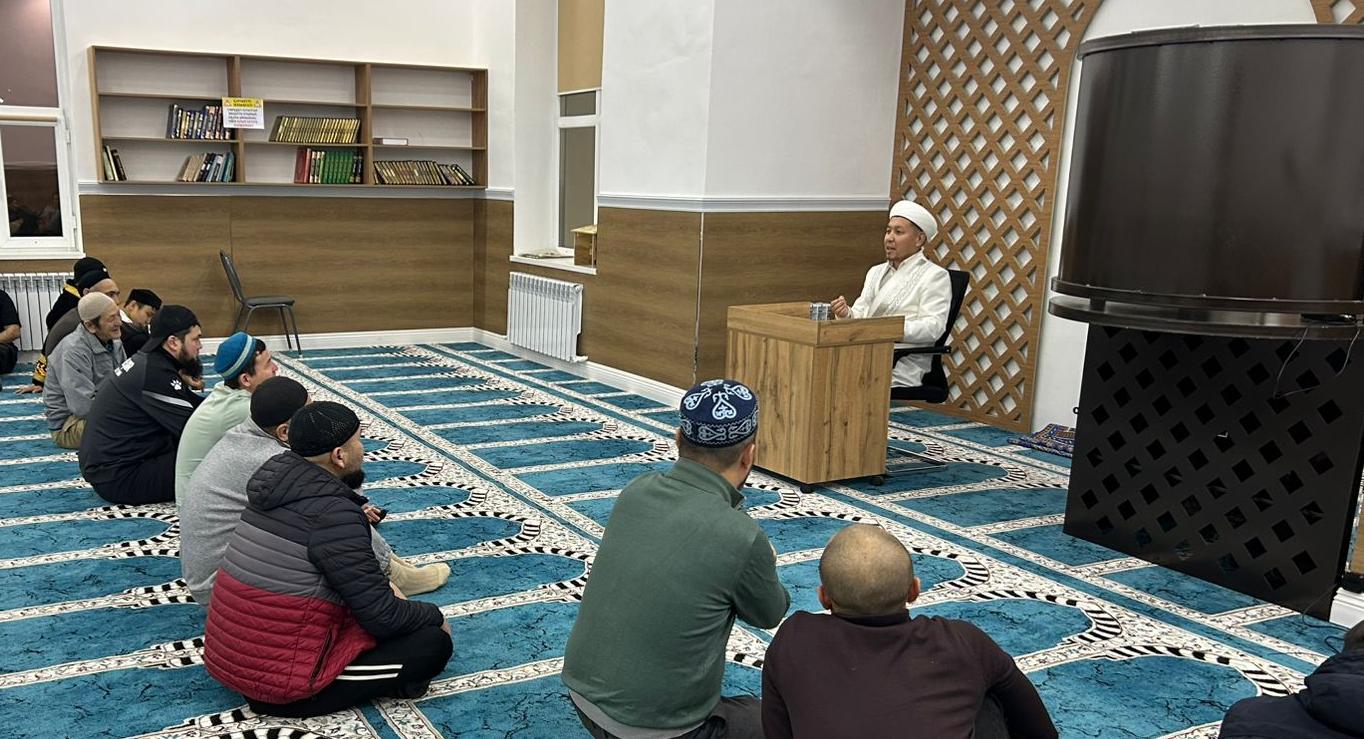 Құптан намазына жиналған жамағатпен кездесуде Облыстың Бас имамы Шалқар қаласындағы «Тәубе» мешітінде мұсылман адамның құлшылықтағы ықыласы мен хушуғ жайында насихат айтты. Уағыздан кейін жамағатпен бірге құптан намазын оқып, елдің амандығы үшін дұға жасады.