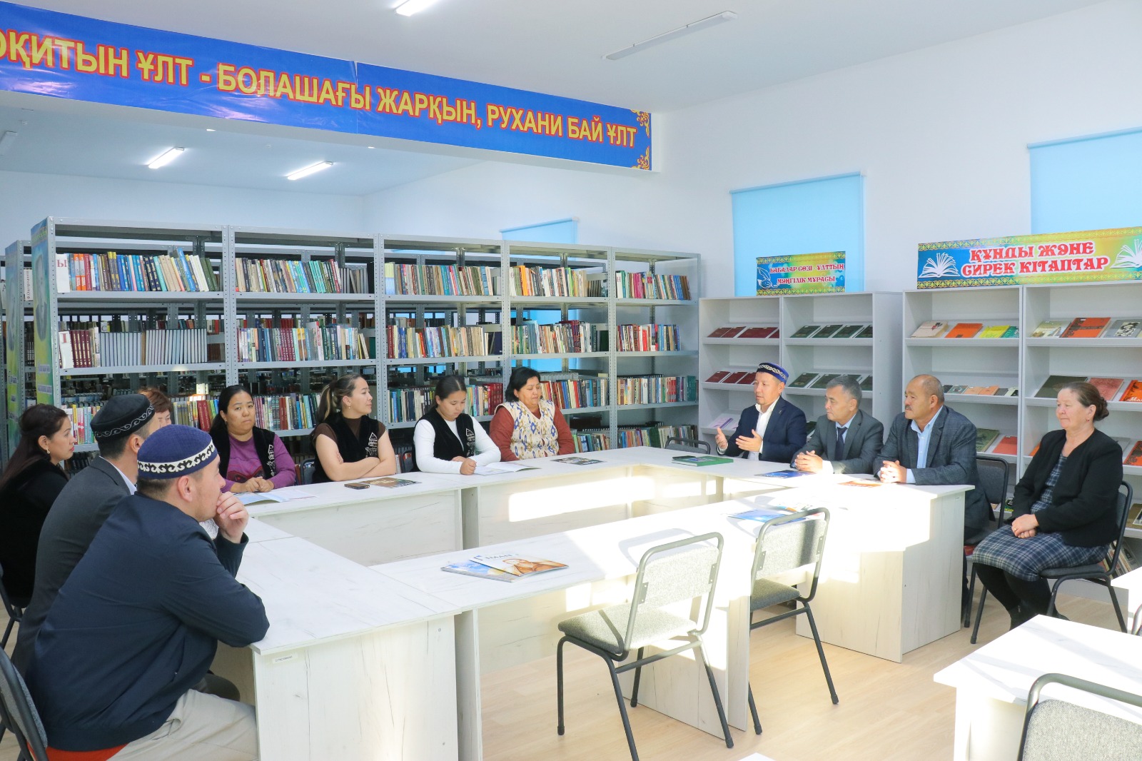 Кездесу барысында мекеме басшысы кітапхана ұжымын таныстырып, техникалық жабдықталуы мен оқырмандармен жүргізіліп жатқан жұмыстар туралы баяндады.