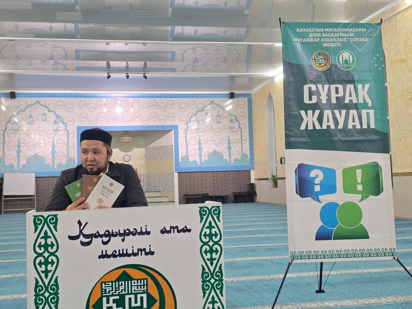 Қалалық мешіттің имамы Тұрсынқұлов Н. жамағатқа арнайы діни сұрақтар қойды,сұраққа дұрыс жауап берген жамағатқа арнайы сыйлықтар берілді.