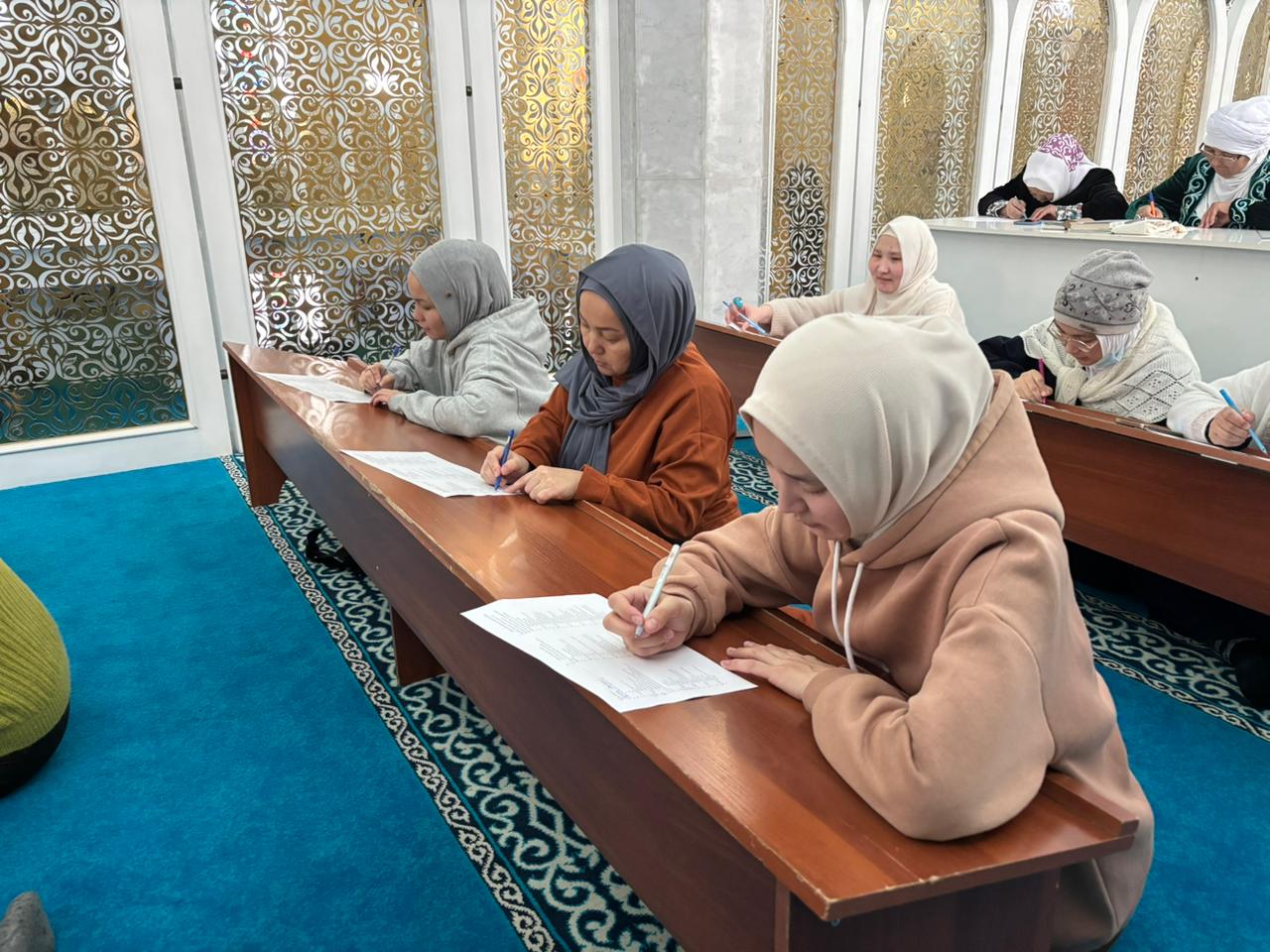 Шәкірттер ақида, Алланың Тағаланың есімдері, фиқһ, және тажуид дәрістерінен тест арқылы жауап берді. Сынақ барысында анықталған қателіктер ұстазбен бірлесе отырып талданып, білімді жетілдіру, дұрыс түсінік қалыптастыру бағытында нақты жұмыс жүргізілді.