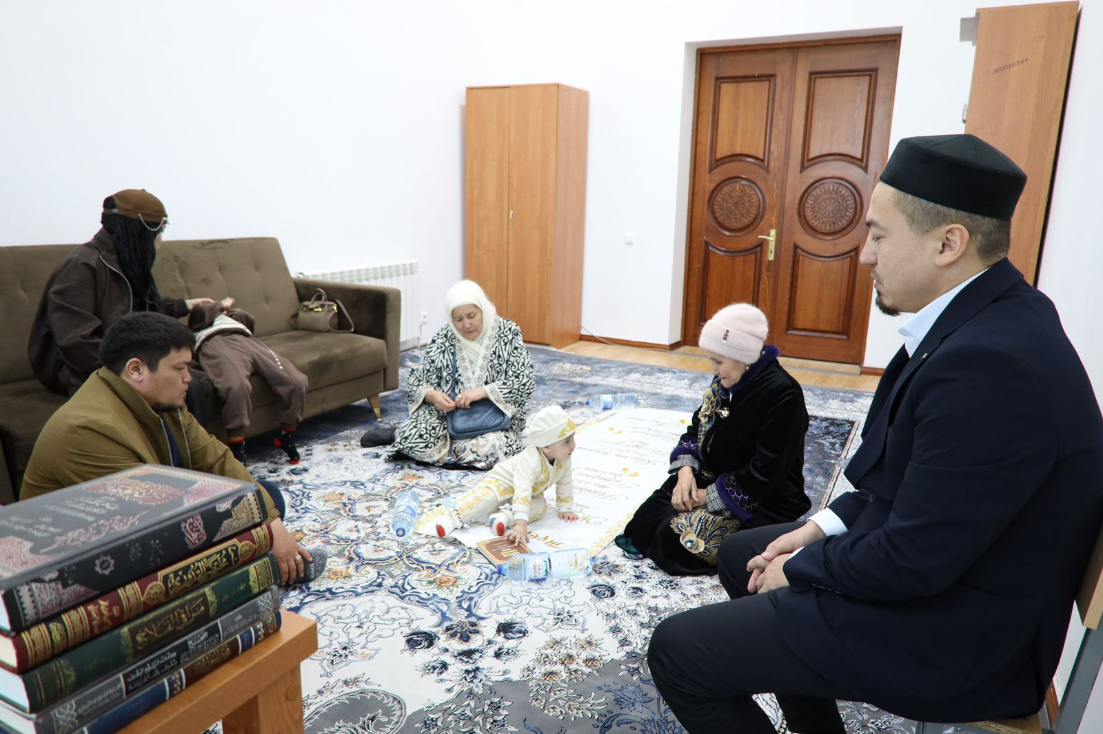Шараға мешіттің наиб имамы Ерәлі қари Құлмағанбет қатысып, қазақ халқының игі дәстүріне сай сәбидің тұсауын кесті. Қари балаға ақ батасын беріп, оның болашағы жарқын, қадамы нық болуын тілеп, арнайы дұға жасады.