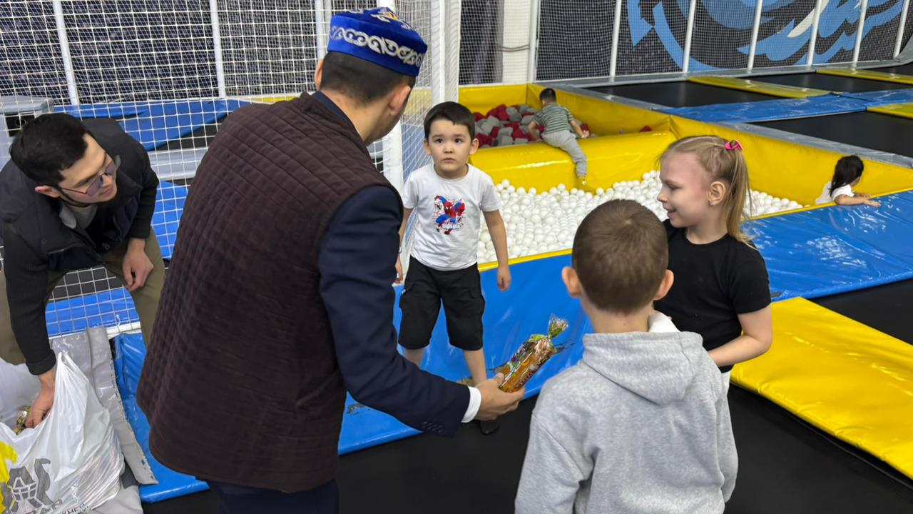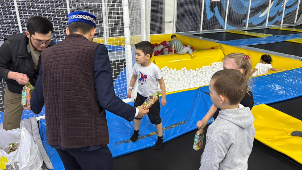 Skypark аумағында өткен бұл шарада кішкентай бүлдіршіндерге тәттілер үлестіріліп, оларды қуанышқа бөледі.