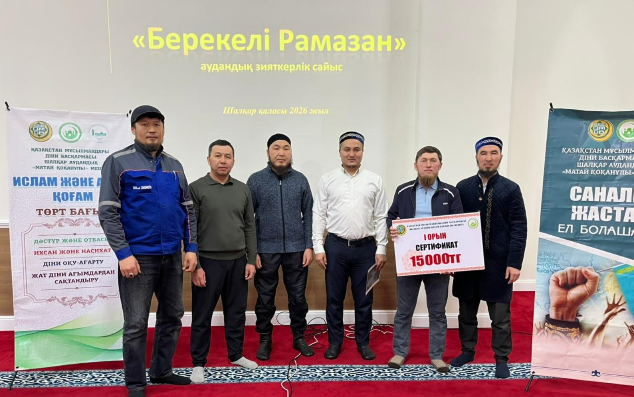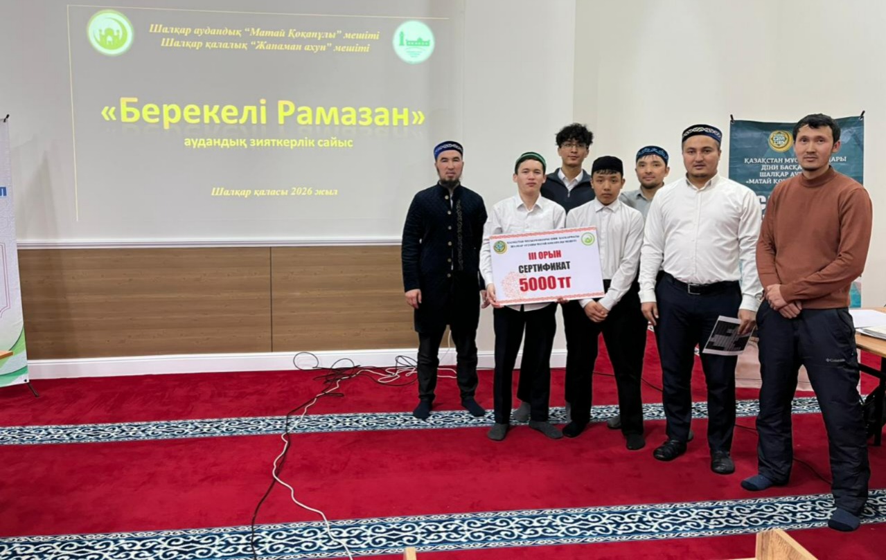 Шалқар ауданында «Жастар ісі» секторының ұйымдастыруымен және ҚМДБ бекіткен «Ислам және адал қоғам» жылы аясында 4 бағыттың бірі — «Діни оқу-ағарту» бойынша «Берекелі Рамазан» атты зияткерлік діни білім сайысы өтті.