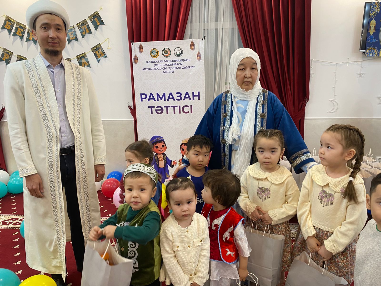 Ақтөбе облысы өкілдігінде ҚМДБ-сы төрағасы, Бас мүфти Наурызбай қажы Тағанұлы бекіткен Рамазан айына арналған іс-шаралар жоспарына сәйкес, Ақтөбе қаласындағы «Досжан хазірет» мешітінің ұстазы Ақжарқын Жилисбаеваның ұйымдастыруымен «Рамазан тәттісі» акциясы аясында мешіт жамағатының балаларына тәттілер таратты.