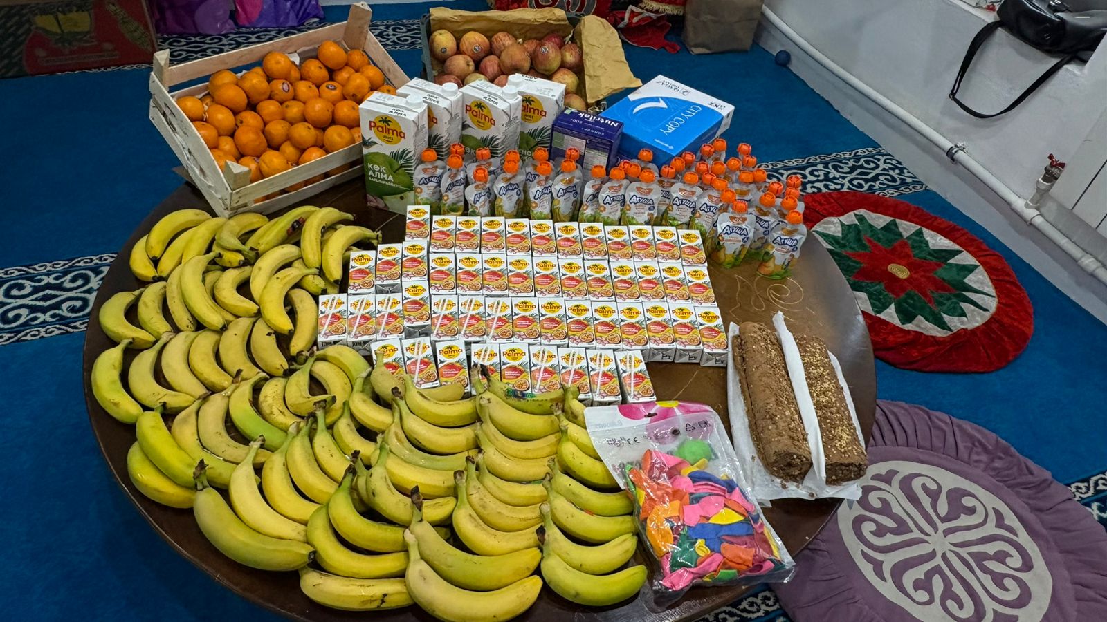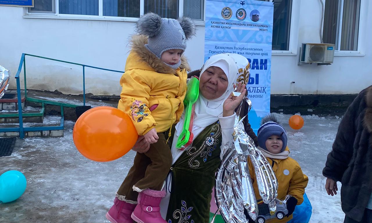 Игі бастама аясында мешіт ұстазы Анар Қойшығұлова шәкірттерімен бірге «Үміт» , «Аяла» балалар үйінің тәрбиеленушілеріне арнайы барып, мерекелік көңіл-күй сыйлады. Сондай-ақ көпбалалы отбасы, 27 бала тәрбиеленіп отырған Жетесовтер отбасына да барды.
