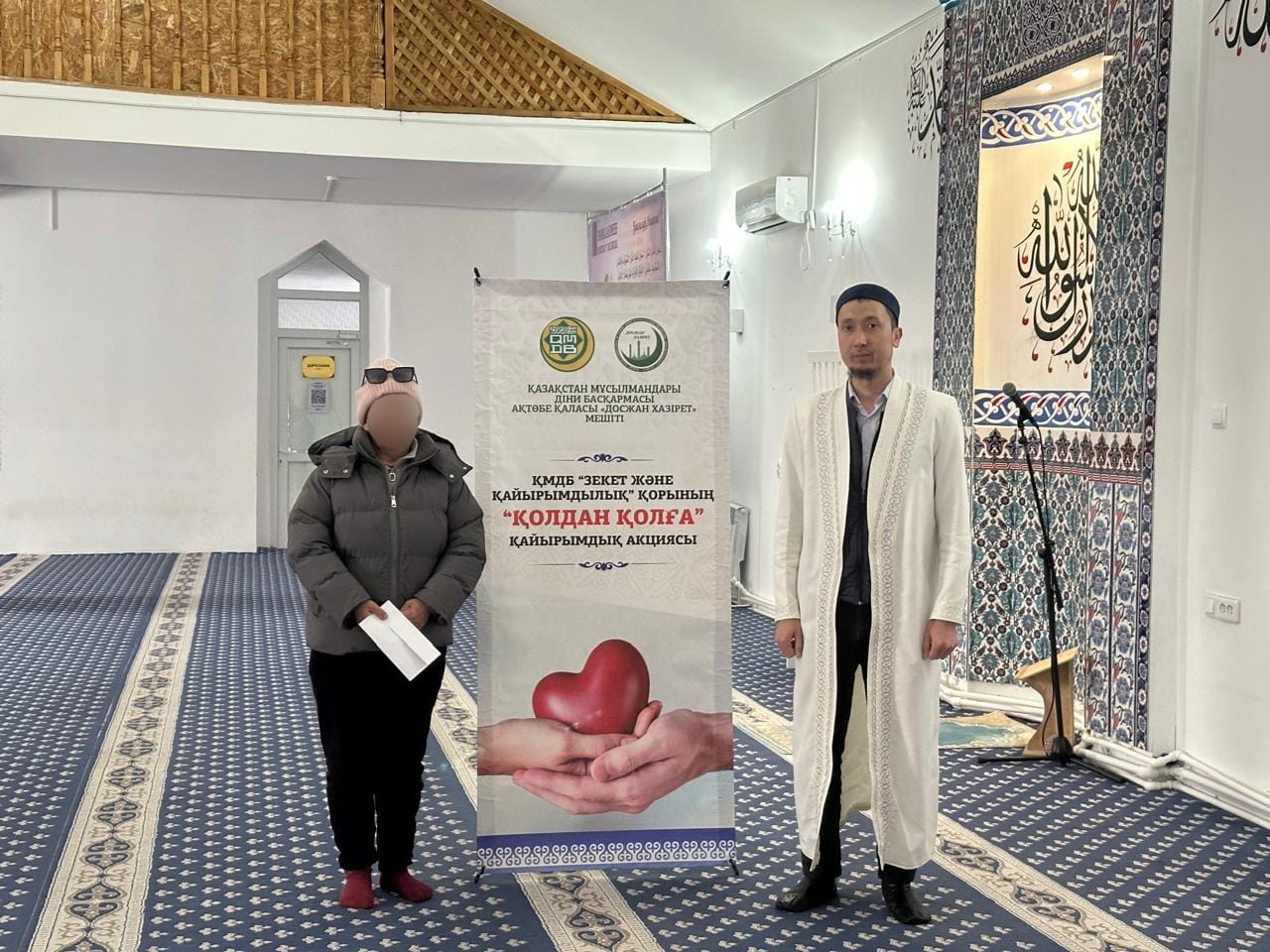 Ақтөбе облысы өкілдігінде ҚМДБ төрағасы, Бас мүфти Наурызбай қажы Тағанұлы бекіткен Рамазан айының жоспарына сәйкес Ақтөбе қалалық "Досжан хазірет" мешітінің имамдарының ұйымдастыруымен ҚМДБ-ның "Зекет және қайырымдылық" қорының "Қолдан қолға" қайырымдылық акциясы аясында мешітке келіп өтініш білдірген мұқтаж 10 отбасыға 50 мың теңгеден жалпы сомасы 500 жүз мың теңге қаражат зекет ретінде үлестірілді.