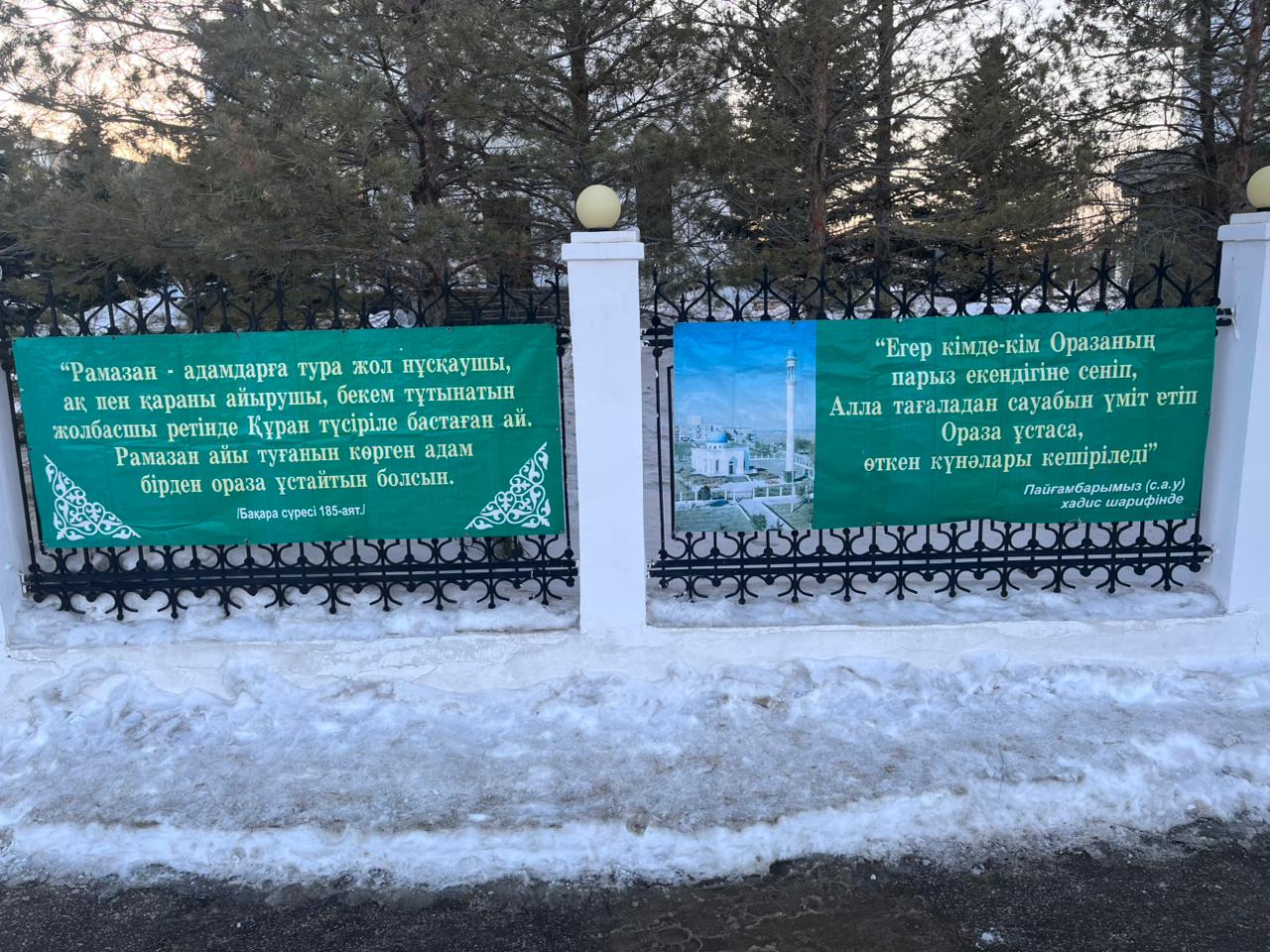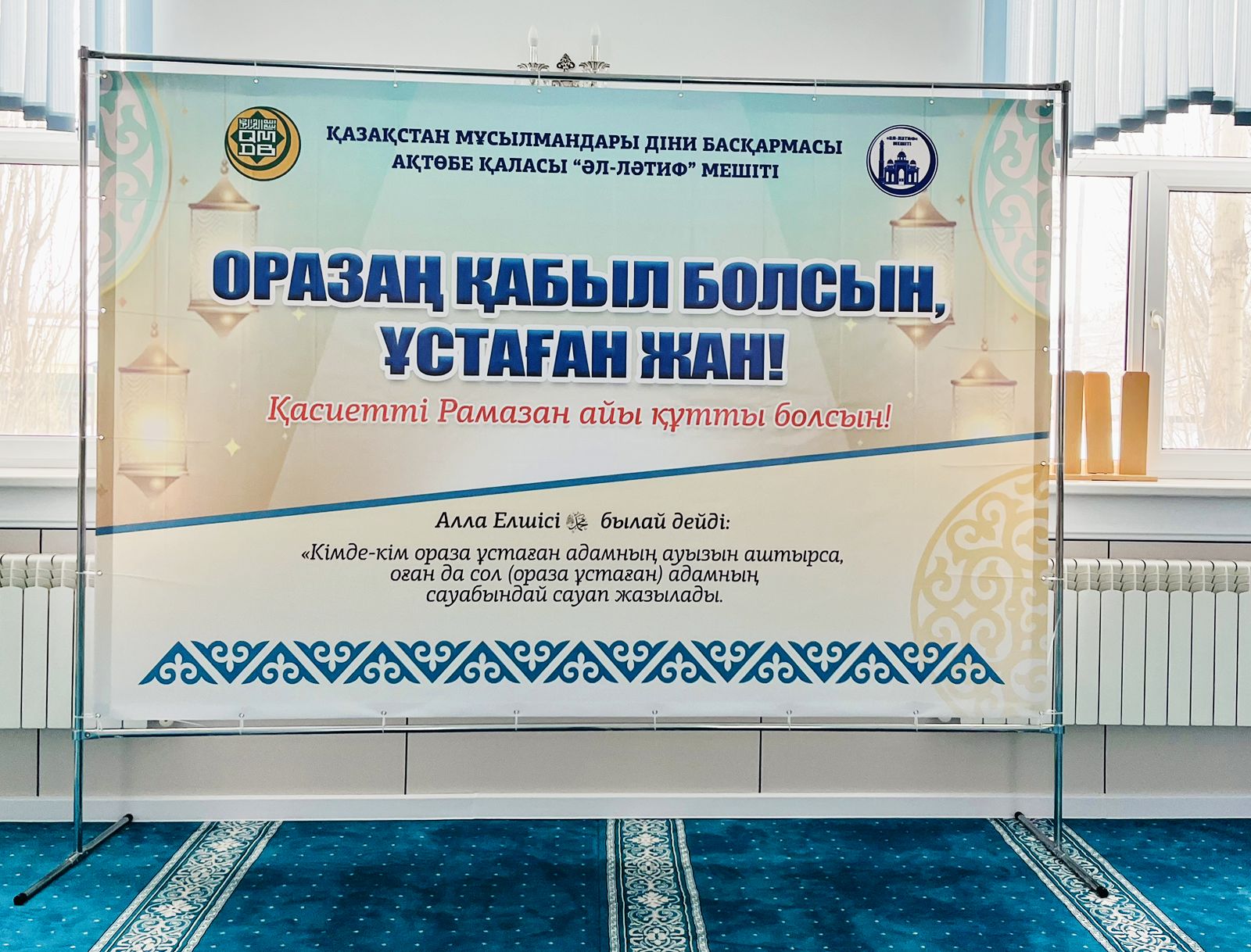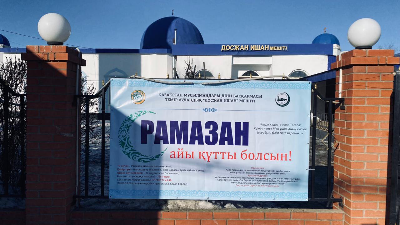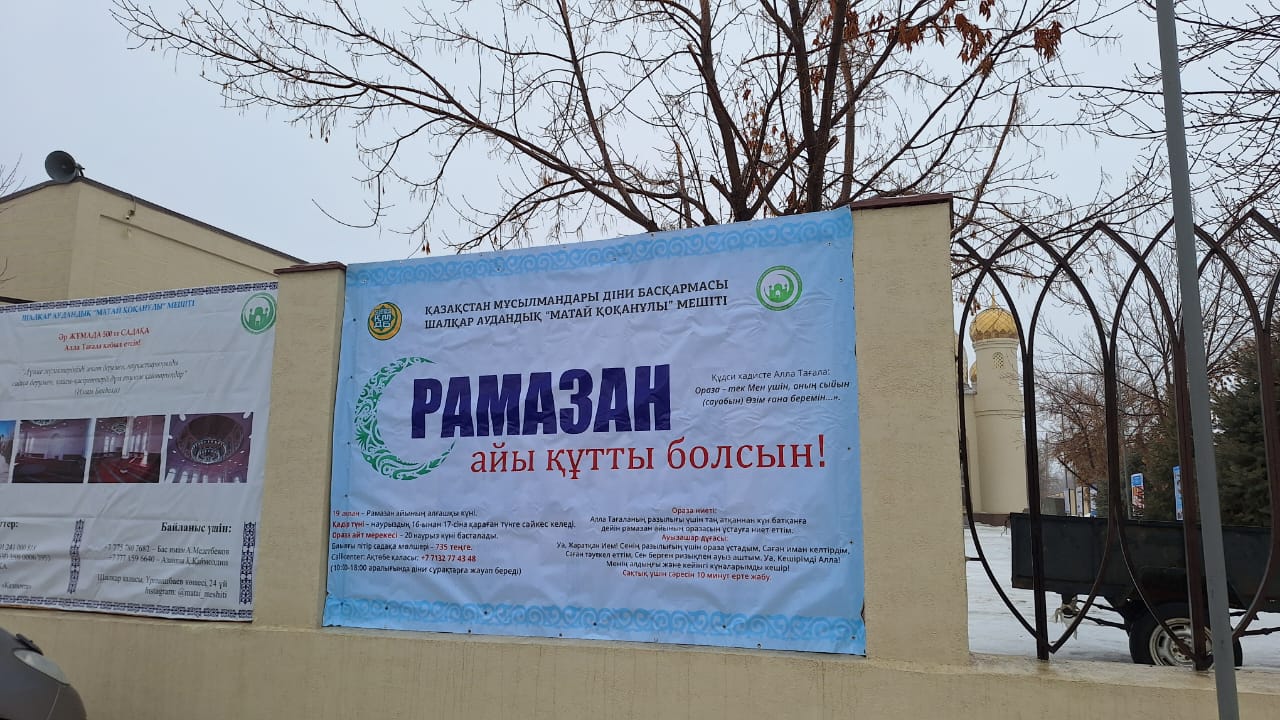 Әр мешіттің алдында «Рамазан айы құтты болсын!», «Ораза айы құтты, берекелі болсын!», «Оразан қабыл болсын, ұстаған жан!», «Нұр шашқан Рамазан берекелі болсын!», «Ораза айы құтты болсын!» деген тұрғындар мен жаматқа арналған құттықтау банерлері тұрғындарды ұлық айдың келуімен сүйіншілеп, оразаның мән-маңызы мен рухани құндылықтарын кеңінен насихаттау мақсатында ұйымдастырылып отыр