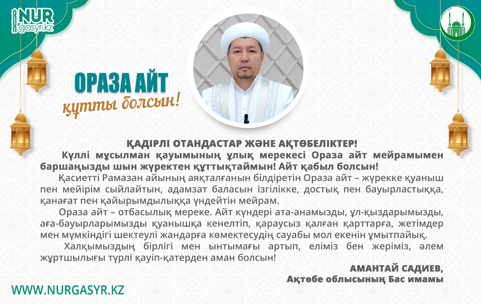 #Рамазан2026: Ақтөбе облысының Бас имамы Амантай Садиевтің Ораза айтпен құттықтауы