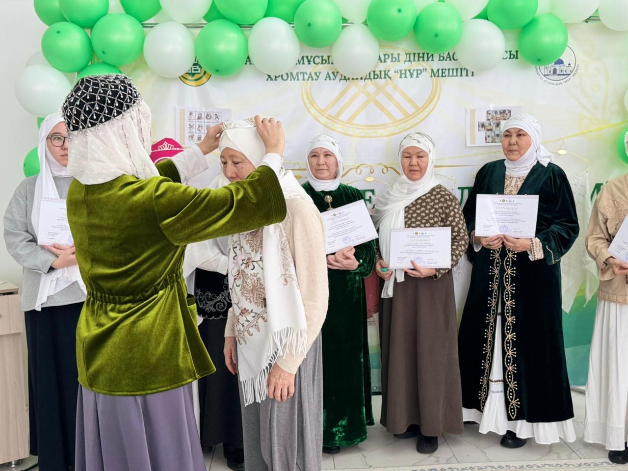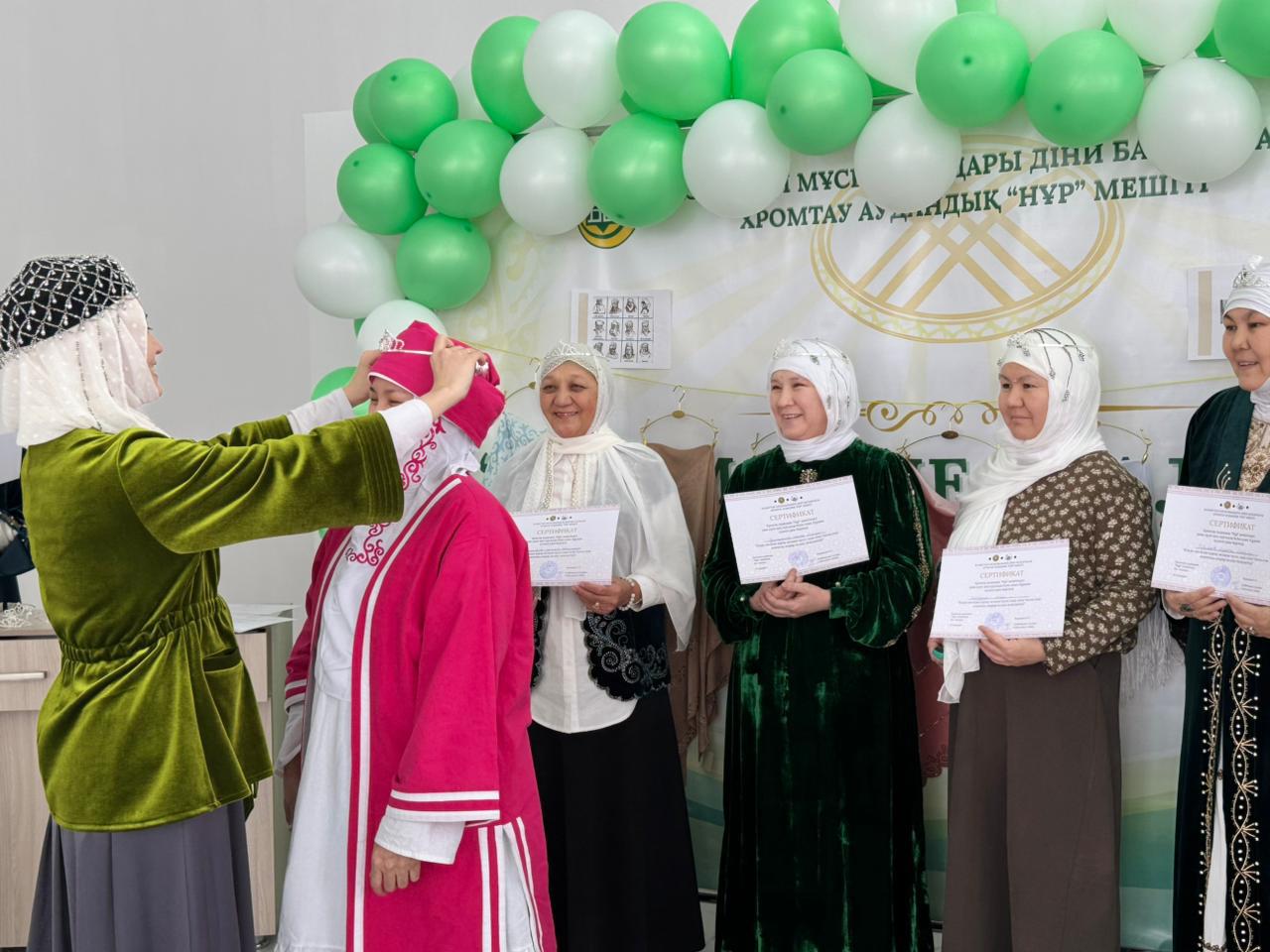 Хромтау аудандық «Нұр» мешітінде әйел-қыздар секторының ұйымдастыруымен Құранға түскен қыз-келіншектерге арналған тәж кигізу рәсімі өтті. Сонымен қатар Алланың кәламын танып-білуге талпынып жүрген аруларға аудандық әйел-қыздар секторының жетекшісі, ұстаз Гүлсара Әлібекқызы арнайы сертификаттар табыс етті.