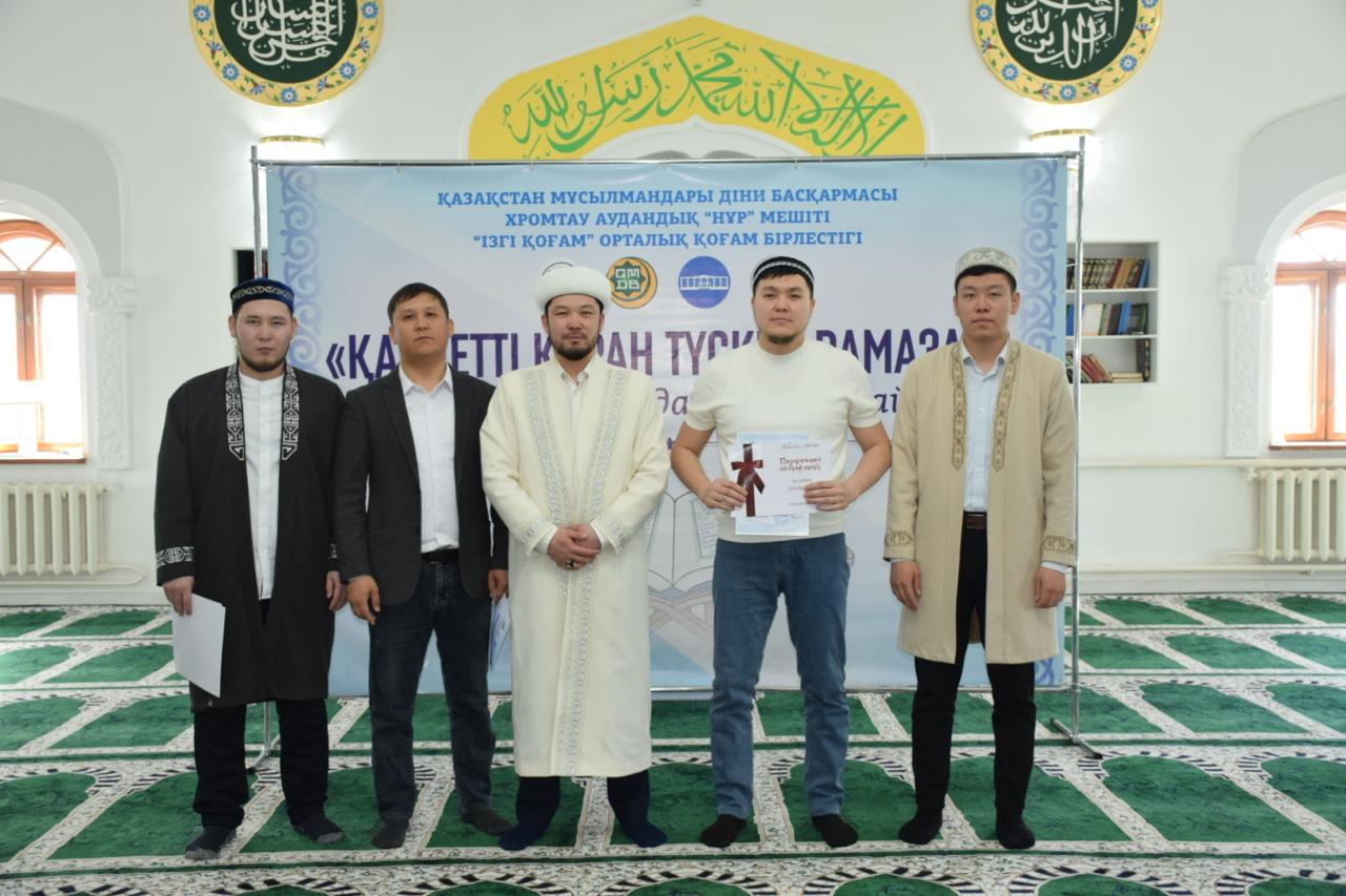 ҚМДБ Ақтөбе облыстық өкілдігіне қарасты Хромтау аудандық «Нұр» мешітінде жамағат арасында Құран жарысы ұйымдастырылды. Тағылымды шараға аудандық ішкі саясат бөлімінің мемлекеттік-әлеуметтік тапсырысы аясында «Ізгі қоғам» қоғамдық бірлестігі демеушілік етті.