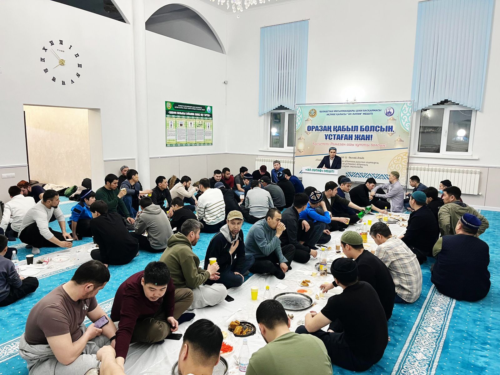 ҚМДБ Ақтөбе облысы өкілдігінің ұйымдастыруымен, Бас мүфти Наурызбай қажы Тағанұлы бекіткен Рамазан айының жоспарына сәйкес Ақтөбе қаласындағы «Әл-Ләтиф» мешітінде ауызашар дастарханы барысында жамағатқа арналған рухани іс-шара ұйымдастырылды.
