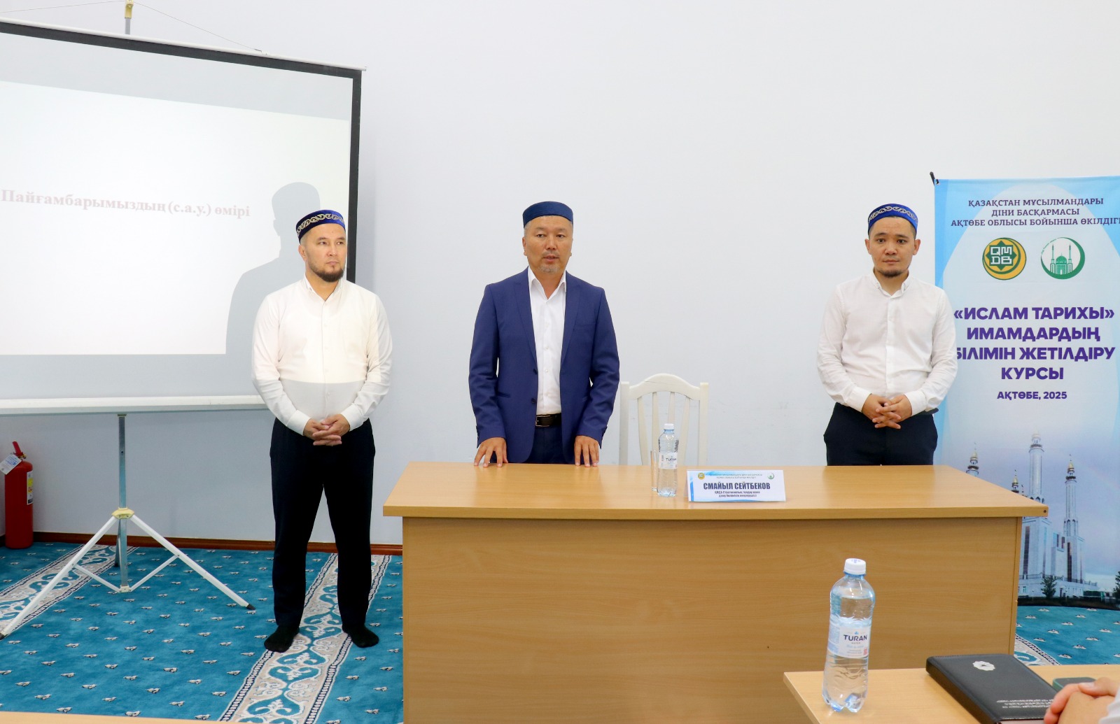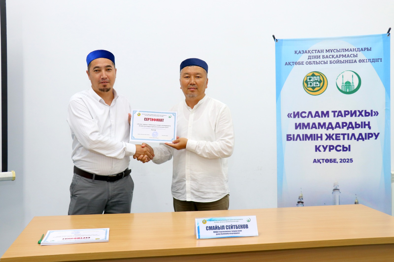 Іс сапар барысында ҚМДБ Ақтөбе облысы өкілдігінің ұйымдастыруымен Ақтөбе облысының қала, аудан мешіттерінің имам-ұстаздарының білімін жетілдіру мақсатында өткен «Ислам тарихы» тақырыбында екі күн семинар-курсты жүргізді.