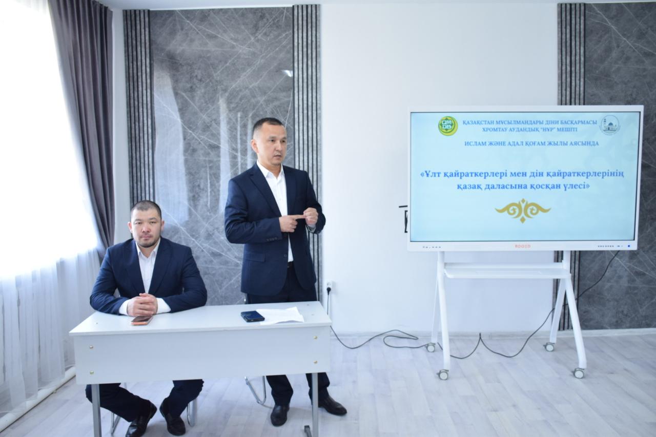 ҚМДБ Ақтөбе облысы бойынша өкілдігіне қарасты Хромтау аудандық «Нұр» мешітінің ұйымдастыруымен «Ислам және адал қоғам» жылы аясында маңызды тағылымды кездесу өтті. Аталған шараға РАНТ мүшесі Жандос Орынбайұлы арнайы қатысып, Хромтау тау-кен техникалық жоғары колледжінің студенттерімен жүздесті.