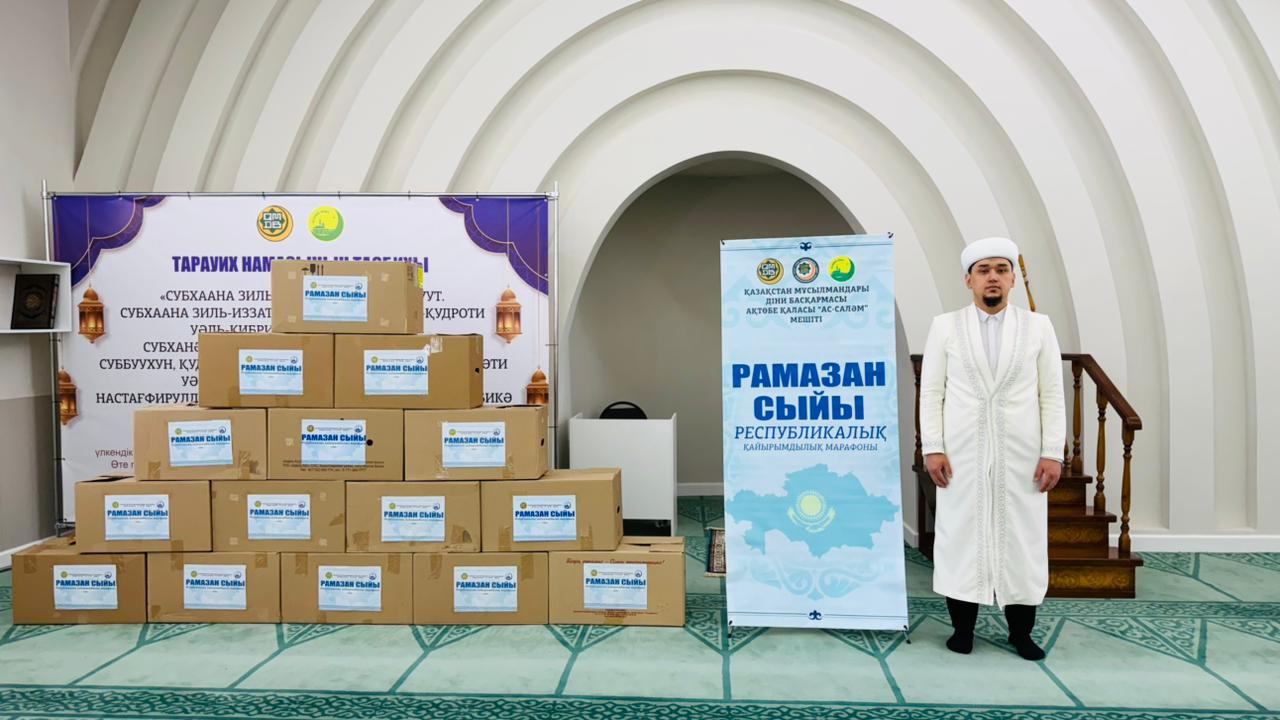 Рамазан айының құрметіне орай Ақтөбе қаласы, "Әс-Сәләм" мешітінің имамы Нұрсұлтан Серікұлы мұқтаж, жалғызбасты, көп балалы 15 отбасыға "Рамазан сыйы" акциясы аясында азық-түлік дорбаларын тартты.