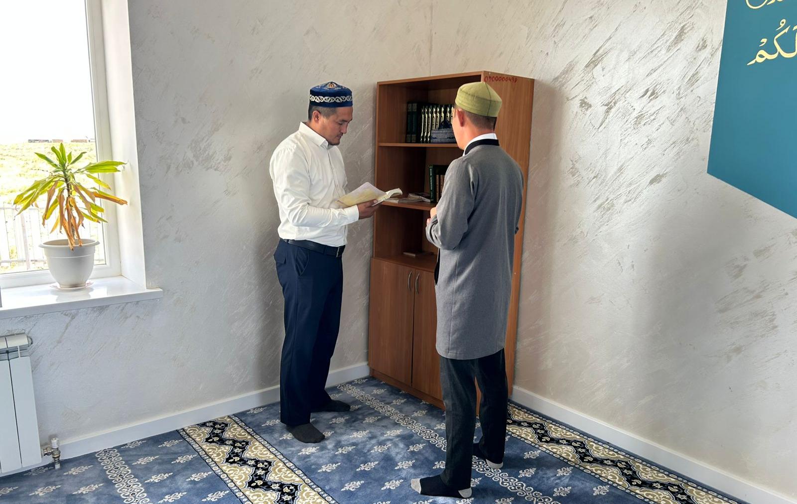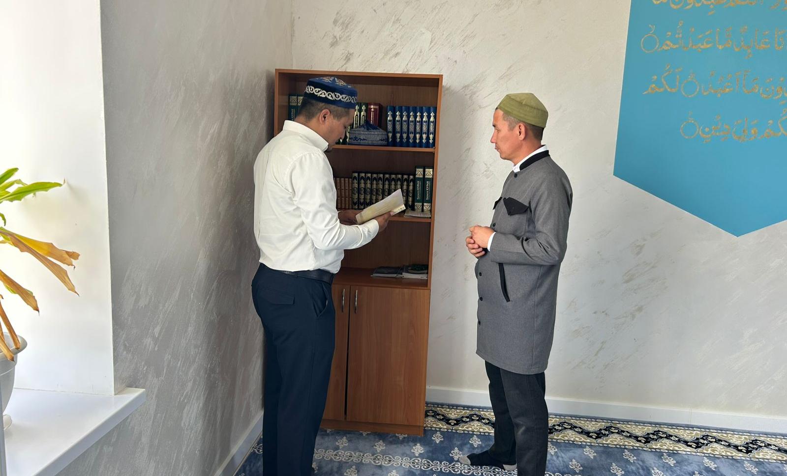 Іс сапар қорытындысында Бас имам мешіт кітапханасына назар аударып, ондағы кітаптардың ҚМДБ-ның оң қорытындысына сәйкестігін тексерді.