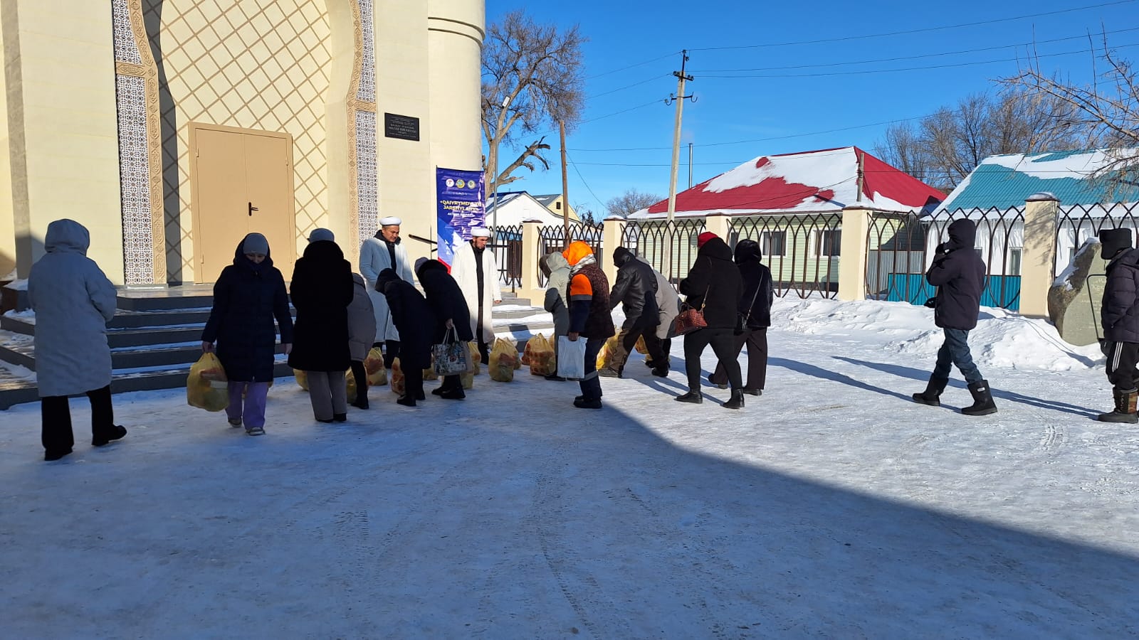 Игі шарада құлшылық үйінің тізімінде тұрған әлеуметтік жағдайы төмен 20 отбасыға жалпы салмағы 184 кг құрайтын азық-түлік себеттері үлестірілді.
